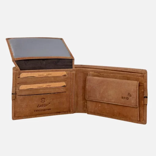 Lavor Δερμάτινο Ανδρικό Πορτοφόλι Μεσαίου Μεγέθους με RFID Προστασία 1-3836 Καφέ Ανοιχτό