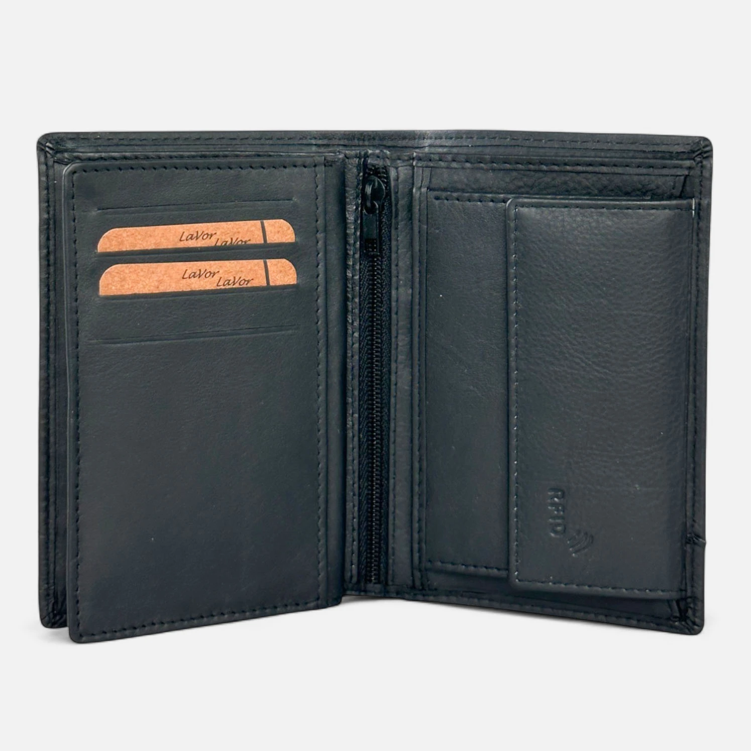 Ανακαλύψτε το αντρικό πορτοφόλι Lavor από γνήσιο φυσικό δέρμα μεγάλης αντοχής, σχεδιασμένο για καθημερινή χρήση με στυλ και πρακτικότητα. Διαθέτει 2 θέσεις για χαρτονομίσματα, 8 θέσεις για κάρτες, ειδική θέση για παλαιά αστυνομική ταυτότητα, καθώς και θήκη για το δίπλωμα οδήγησης. Στο εσωτερικό θα βρείτε πρακτική τσέπη για κέρματα, εσωτερικό φερμουάρ για ασφάλεια, ενώ η τεχνολογία RFID προστασίας εξασφαλίζει ότι οι κάρτες σας παραμένουν ασφαλείς από ανεπιθύμητες χρεώσεις.