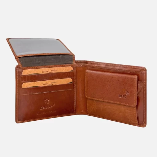 Αντρικό δερμάτινο πορτοφόλι μικρού μεγέθους από την εταιρεία Lavor. κατασκευασμένο από υψηλής ποιότητας δέρμα, αυτό το πορτοφόλι διαθέτει δύο θέσεις για χαρτονομίσματα, 9 θήκες για κάρτες, εξασφαλίζοντας την οργάνωση και την άνεση στη χρήση. Εξοπλισμένο με τεχνολογία RFID για προστασία των καρτών από ανεπιθύμητες σαρώσεις, παρέχει ασφάλεια και ιδιωτικότητα στις συναλλαγές σας.
