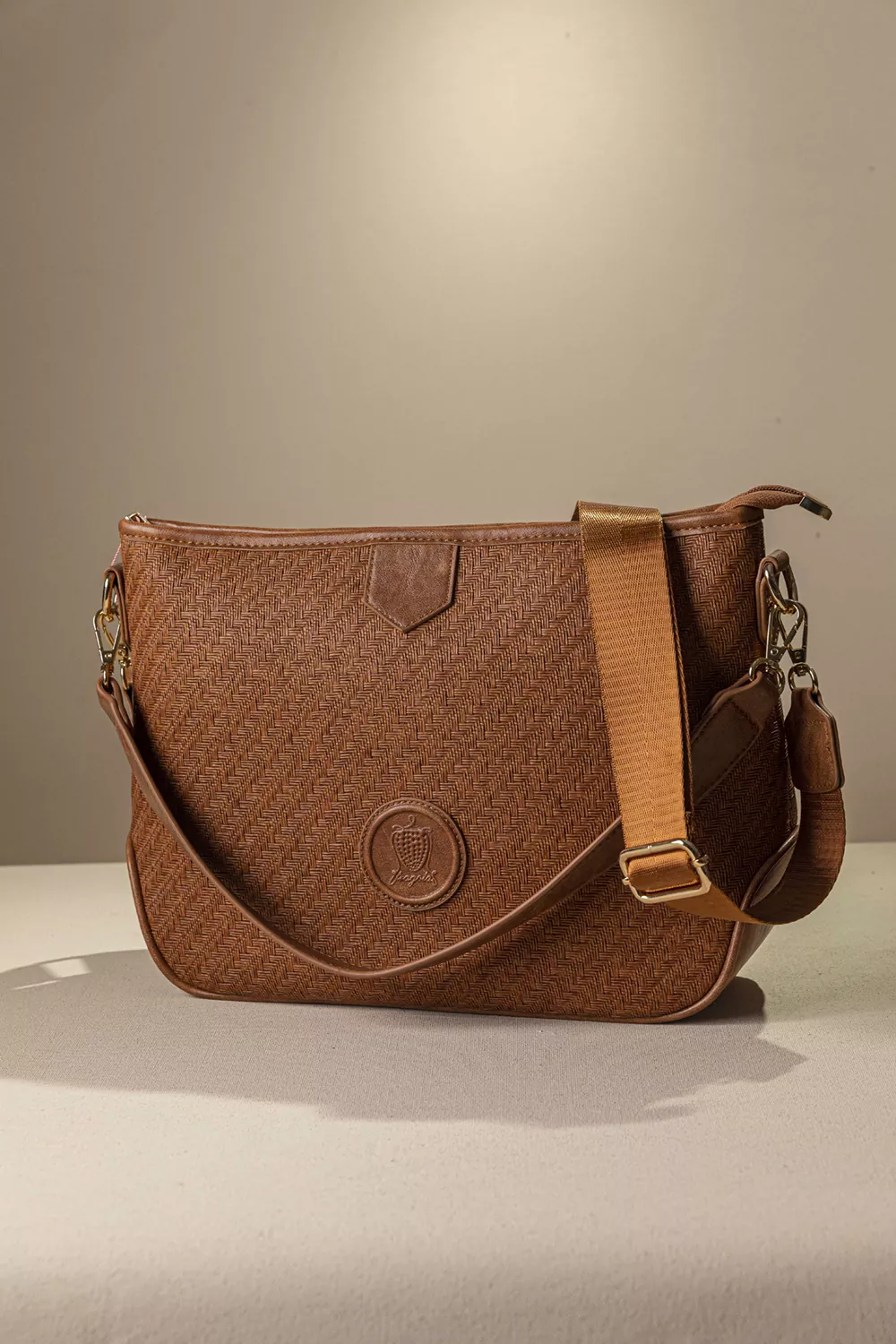 • Η χιαστί τσάντα ώμου που θα "βολέψει" κάθε γυναίκα και κατάλληλη για όλη την ημέρα!! • Στο μπροστινό μέρος extra διακριτικό ανάγλυφο με το logo μας. • Στο εσωτερικό της θα βρείτε διαχωριστική θήκη και φερμουάρ. Επίσης στη φόδρα της θα βρείτε ένα μικρό τσεπάκι με φερμουάρ και ένα χωρίς για την αποθήκευση των μικροαντικειμένων σας. Υλικό: Συνθετικό δέρμα με υφή ψάθας σε γήινες αποχρώσεις.