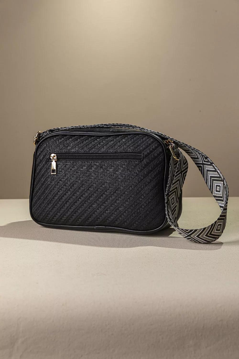 Ψάθινη Γυναικεία Τσάντα Ώμου Χιαστί Fragola FH726 Μαύρο
