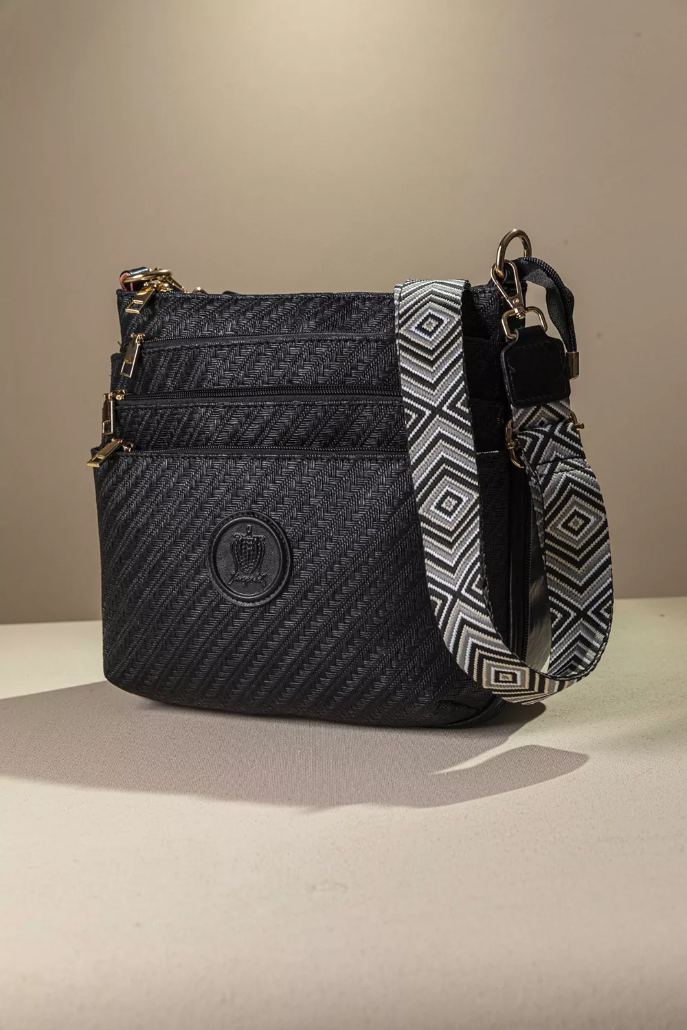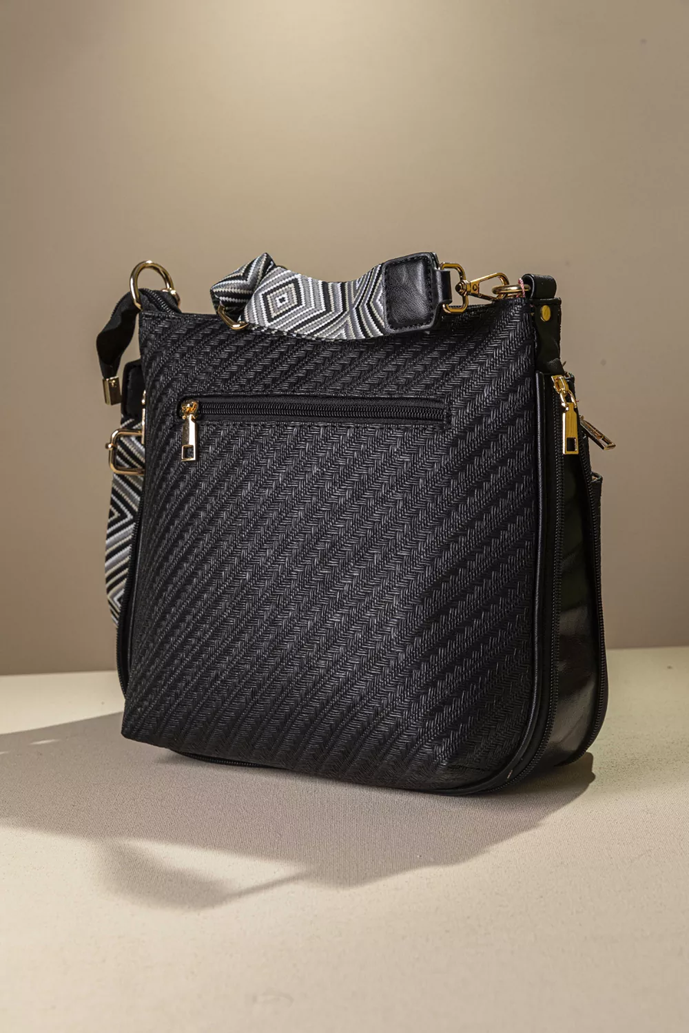 • Διαθέτει ένα κοντό χέρι για τον ώμο και ένα μακρύ με αυξομείωση για να τη φοράτε χιαστί.