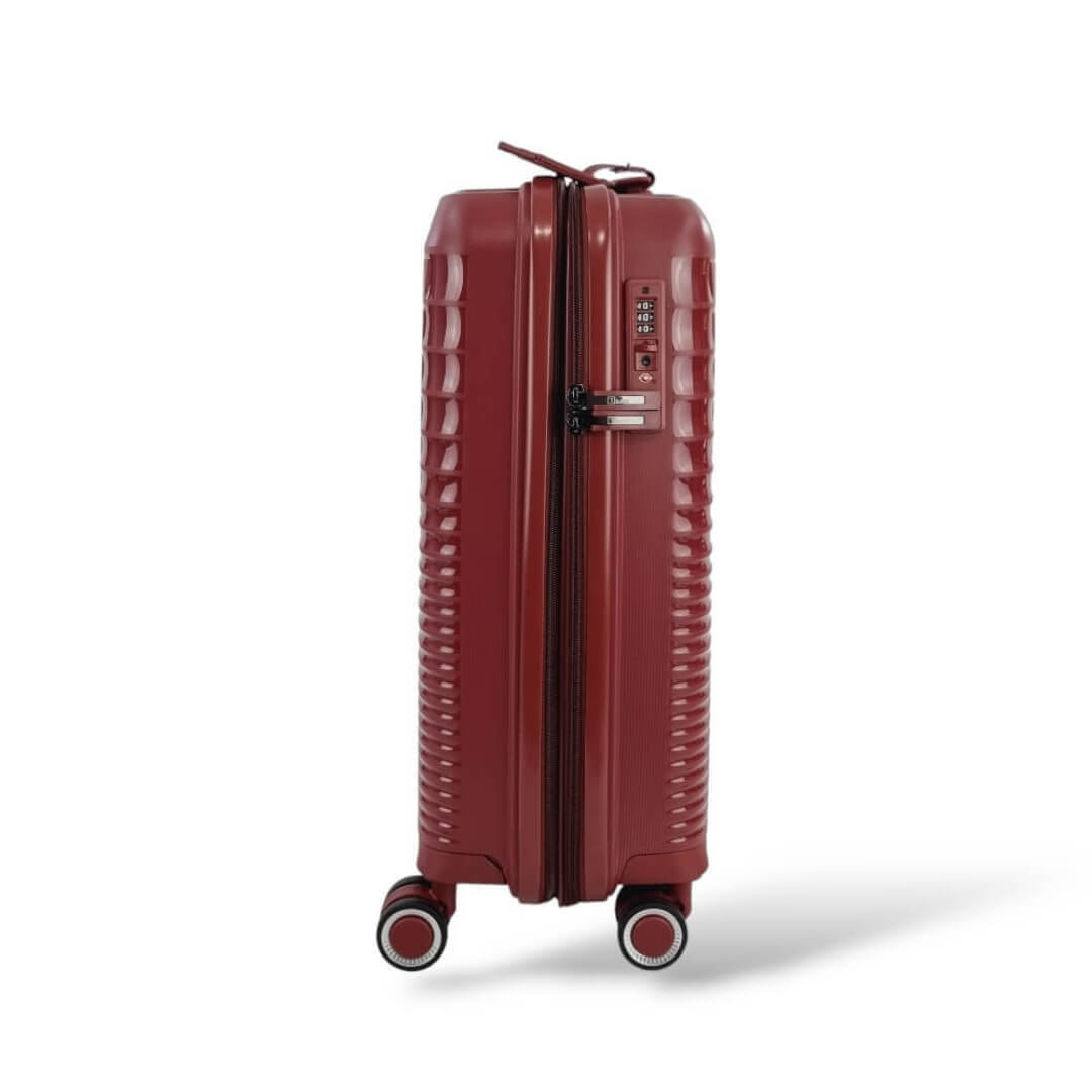 Βαλίτσα της εταιρείας Rain σε μπορντό χρώμα. Το καθαρό της βάρος είναι 2,8 κιλά. Είναι μικρή σε μέγεθος, κατάλληλη για να την μεταφέρετε μαζί σας στην καμπίνα του αεροσκάφους, ειδικά εάν κάνετε συχνά ταξίδια. Οι τέσσερις ρόδες που διαθέτει κινούνται προς όλες τις κατευθύνσεις κάνοντας έτσι τη μεταφορά της πολύ εύκολη. Το βάρος της είναι κάτω των 3 κιλών, γεγονός που την καθιστά μια ελαφριά αποσκευή.