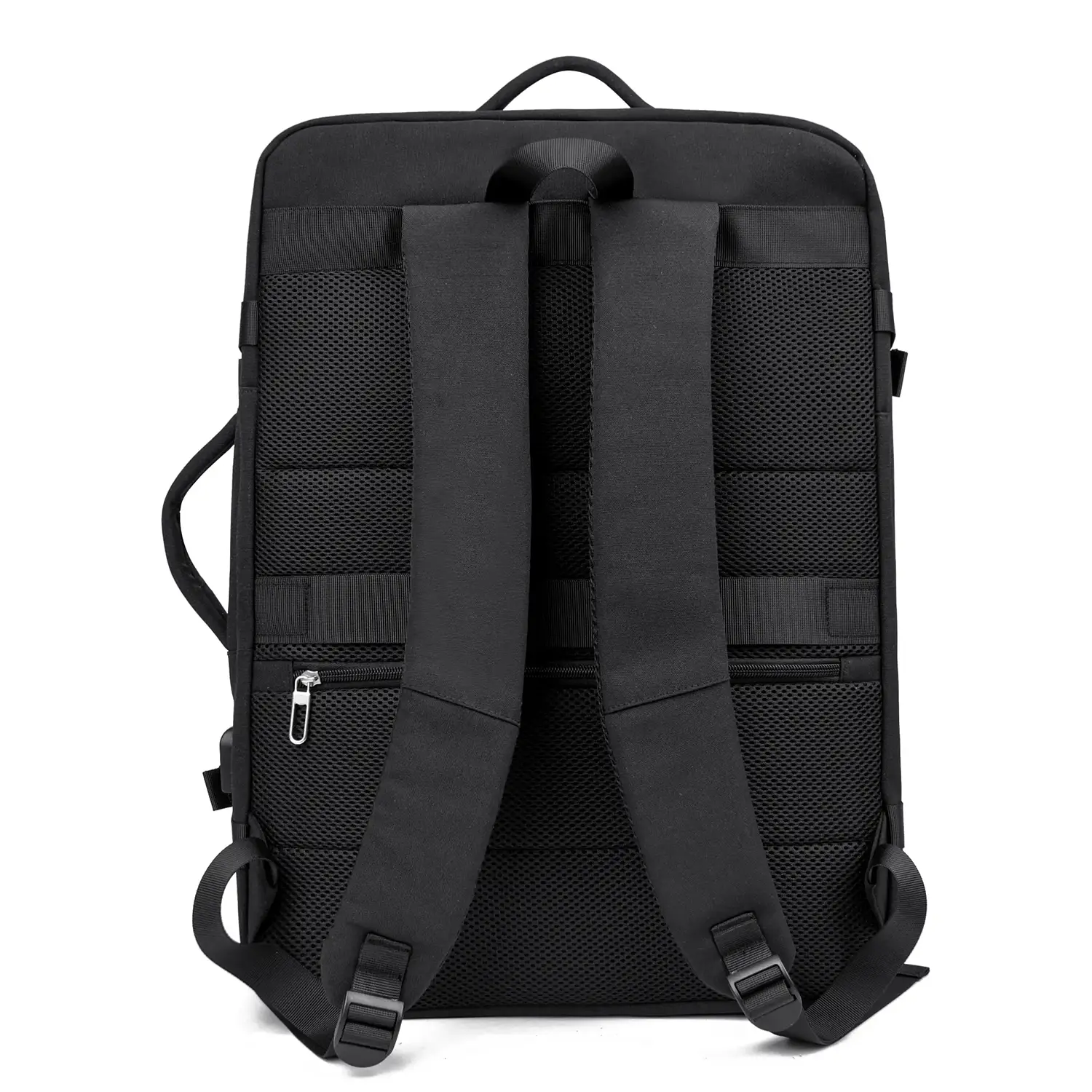 Η πίσω πλευρά διαθέτει εργονομική επένδυση με αναπνέον mesh υλικό που μειώνει τη θερμότητα και την εφίδρωση ακόμα και σε μεγαλύτερες μετακινήσεις. Οι φαρδείς ιμάντες ώμου με foam επένδυση κατανέμουν το βάρος ομοιόμορφα και μειώνουν την ένταση στους ώμους και στη σπονδυλική στήλη. Υπάρχει επίσης αφαιρούμενος ιμάντας ώμου για χρήση του σακιδίου ως shoulder bag ή messenger — ευελιξία που κάνει τη διαφορά σε πολυσύχναστα αεροδρόμια.