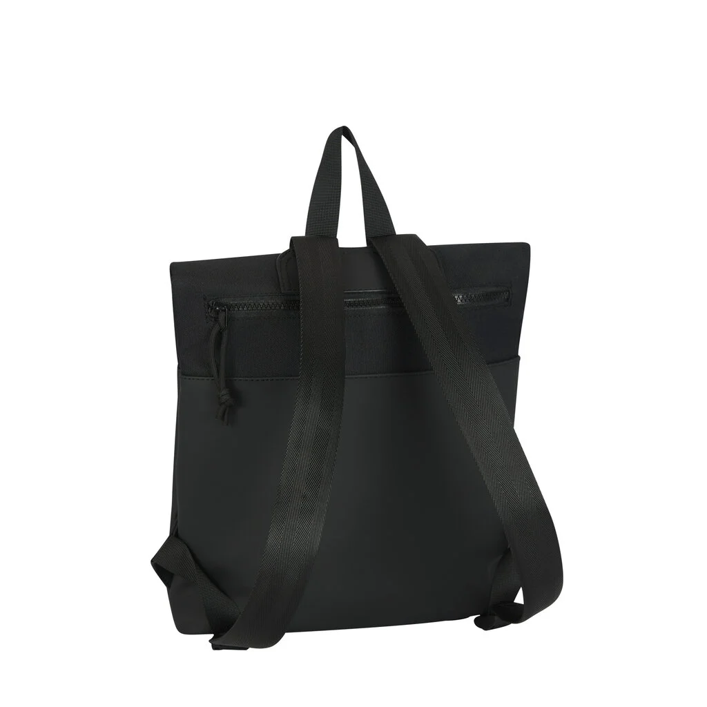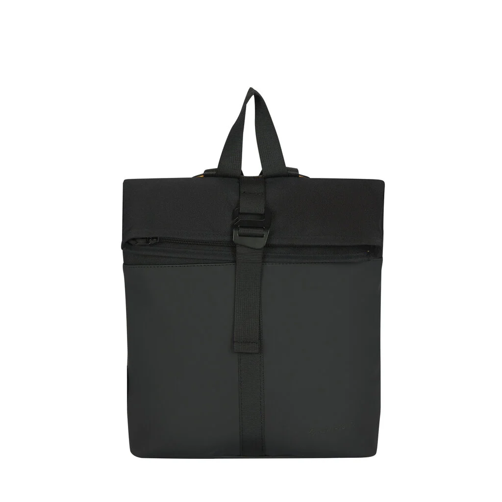 Αυτό το μοντέρνο, αδιάβροχο σακίδιο πλάτης είναι άνετο στη μεταφορά λόγω του ελαφρού βάρους του. Παρ' όλα αυτά, διατηρεί τη γοητεία του με τον κομψό σχεδιασμό του. Το κύριο διαμέρισμα είναι εύκολο να επεκταθεί ή να συρρικνωθεί με το τμήμα με το ρολό στο πάνω μέρος, επιτρέποντάς σας να δημιουργήσετε έως και 10 cm περισσότερο χώρο. Το κύριο διαμέρισμα ασφαλίζει με ένα ανθεκτικό φερμουάρ και μια αγκράφα που ενσωματώνεται άψογα στο σχέδιο. Μέσα στο κύριο διαμέρισμα, υπάρχουν δύο τσέπες και μια τσέπη με φερμουάρ για αντικείμενα όπως το τηλέφωνό σας. Στο μπροστινό και στο πίσω μέρος του σακιδίου πλάτης, υπάρχει μια επιπλέον τσέπη με φερμουάρ, βολική για μικρά αντικείμενα στα οποία χρειάζεστε γρήγορη πρόσβαση. Η στιβαρή λαβή διευκολύνει το μάζεμα και το κρέμασμα της τσάντας.