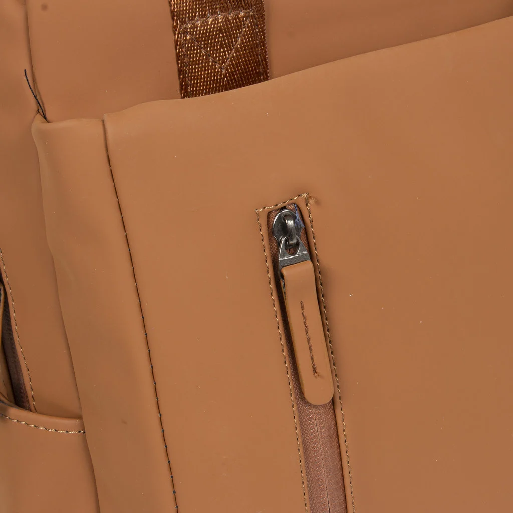 Στο μπροστινό μέρος διαθέτει δύο ευρύχωρες τσέπες με φερμουάρ (οριζόντια και κάθετη), ενώ η οριζόντια τσέπη περιλαμβάνει επιπλέον χώρους: δύο θήκες για στυλό, δύο μικρές τσέπες και μία επιπλέον τσέπη με φερμουάρ. Στα πλαϊνά του σακιδίου υπάρχουν δύο ενσωματωμένες τσέπες, ιδανικές για μπουκάλι νερού ή άλλα μικρά αντικείμενα.