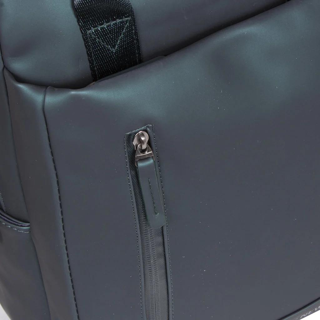 Στο μπροστινό μέρος διαθέτει δύο ευρύχωρες τσέπες με φερμουάρ (οριζόντια και κάθετη), ενώ η οριζόντια τσέπη περιλαμβάνει επιπλέον χώρους: δύο θήκες για στυλό, δύο μικρές τσέπες και μία επιπλέον τσέπη με φερμουάρ. Στα πλαϊνά του σακιδίου υπάρχουν δύο ενσωματωμένες τσέπες, ιδανικές για μπουκάλι νερού ή άλλα μικρά αντικείμενα.