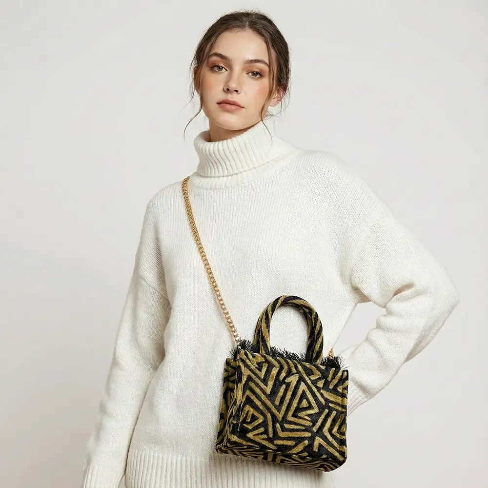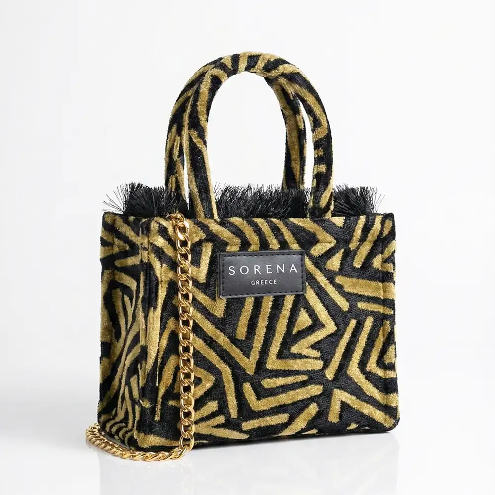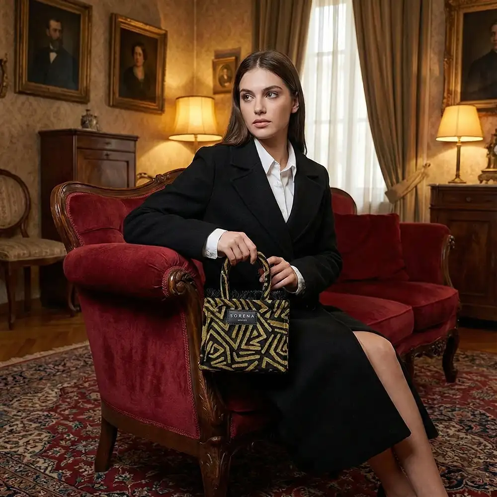 Η Sorena Sylvana Small είναι μια χειροποίητη mini tote τσάντα χειρός, με διαστάσεις 20×17cm. Διαθέτει φερμουάρ ασφαλείας, εσωτερική επένδυση velvet, τον iconic ιμάντα Sorena και συνοδεύεται από προστατευτική dust bag. Μια ξεχωριστή επιλογή που συνδυάζει κομψότητα και πρακτικότητα καθημερινά.