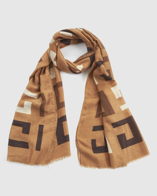 Μοντέρνα και ευκολοφόρετη εσάρπα της Verde με μεγάλα γραμμικά μοτίβα που τραβούν την προσοχή. Το καμηλό και το μαύρο χρώμα συνδυάζονται με τον απαλό πολυεστέρα για άνεση και στυλ στις καθημερινές εμφανίσεις. Κατάλληλη για layering σε casual και smart looks.