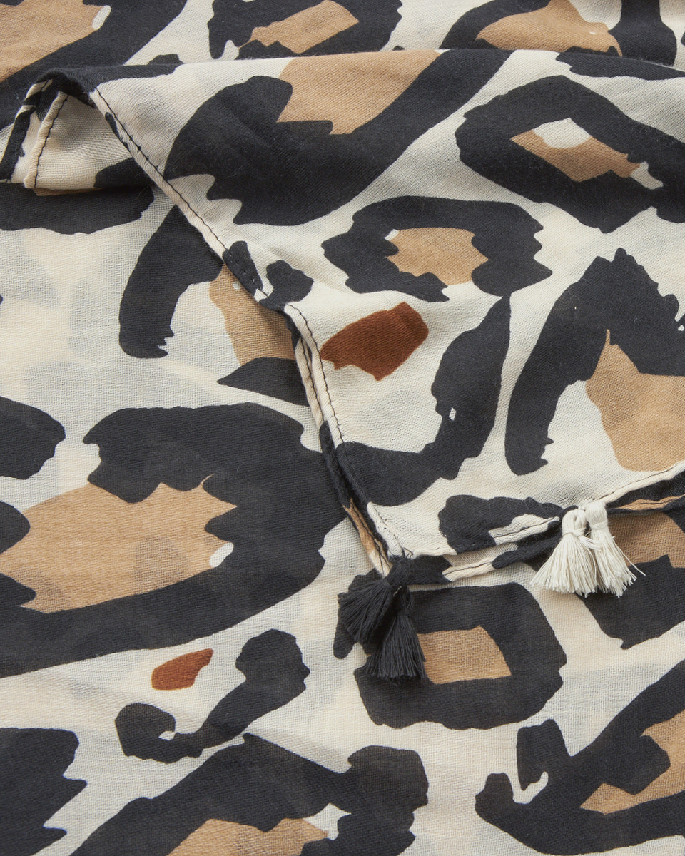 Μια εντυπωσιακή γυναικεία εσάρπα με διαχρονικό animal print μοτίβο, που προσθέτει ένταση και χαρακτήρα σε κάθε outfit. Το ελαφρύ ύφασμα και τα διακοσμητικά κρόσσια την καθιστούν ιδανική για μεταβατικές εποχές. Ένα αξεσουάρ που μπορεί να ανανεώσει ακόμη και το πιο απλό ντύσιμο.