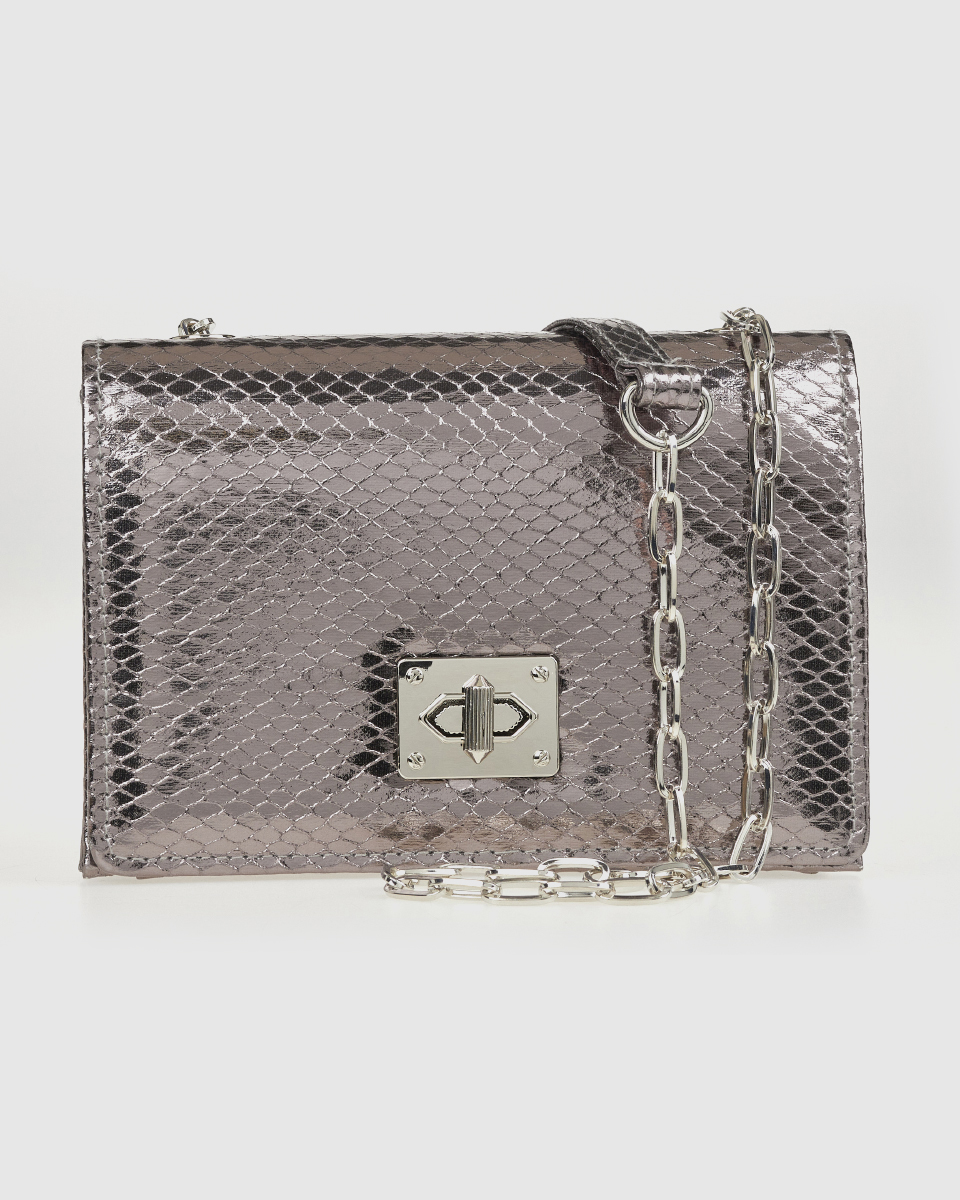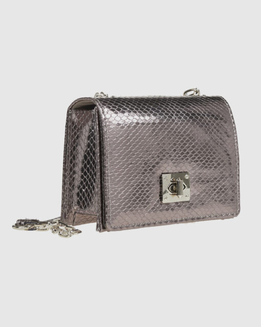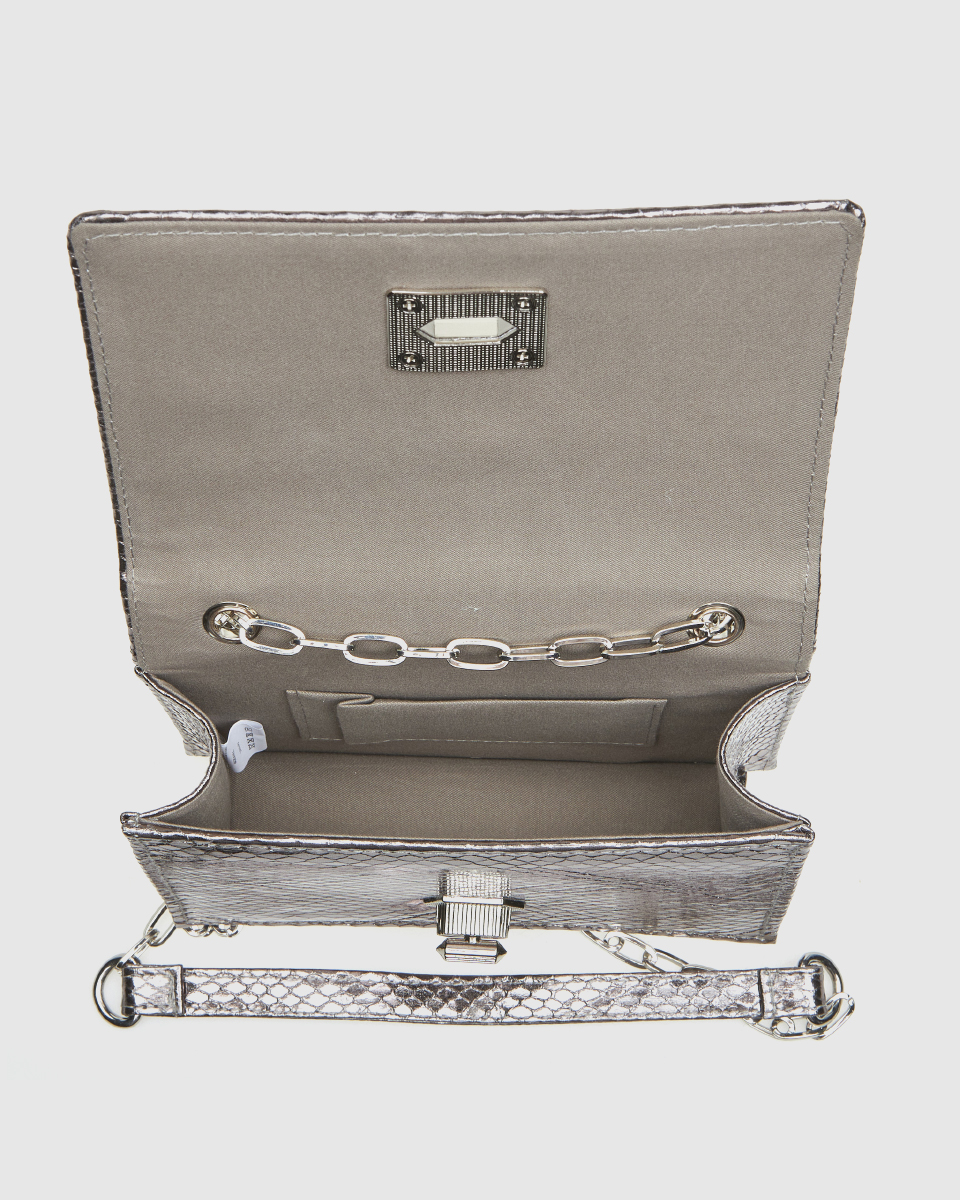 • Μοναδικό μεταλλικό λουράκι και φίνα snake-skin υφή