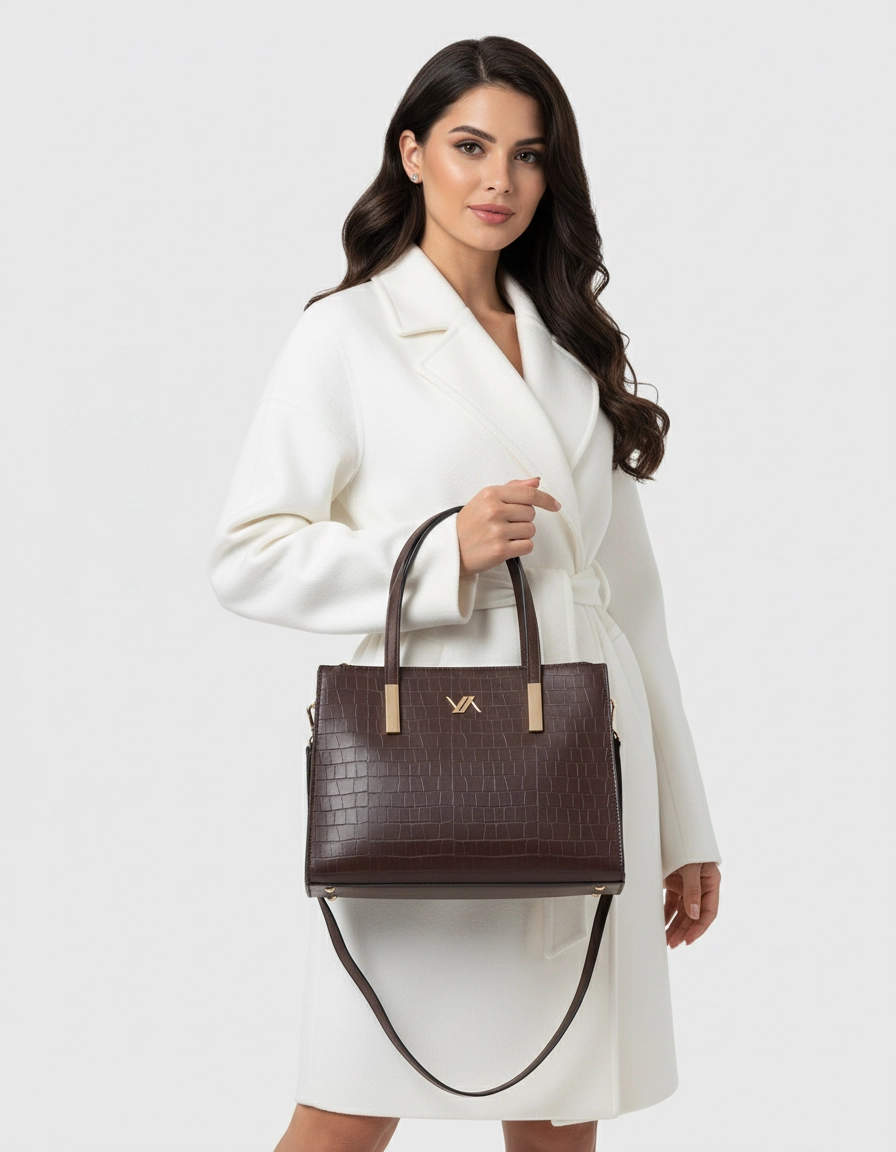 Με κομψή γραμμή και εντυπωσιακή croco υφή, αυτή η τσάντα χειρός Verde προσφέρει την τέλεια ισορροπία ανάμεσα σε πολυτέλεια και καθημερινή πρακτικότητα. Διαθέτει αποσπώμενο λουρί ώμου για χρήση χιαστί ή στον ώμο, διακριτικό μεταλλικό λογότυπο και άνετο εσωτερικό, καθιστώντας την ιδανική για όλες τις ώρες.