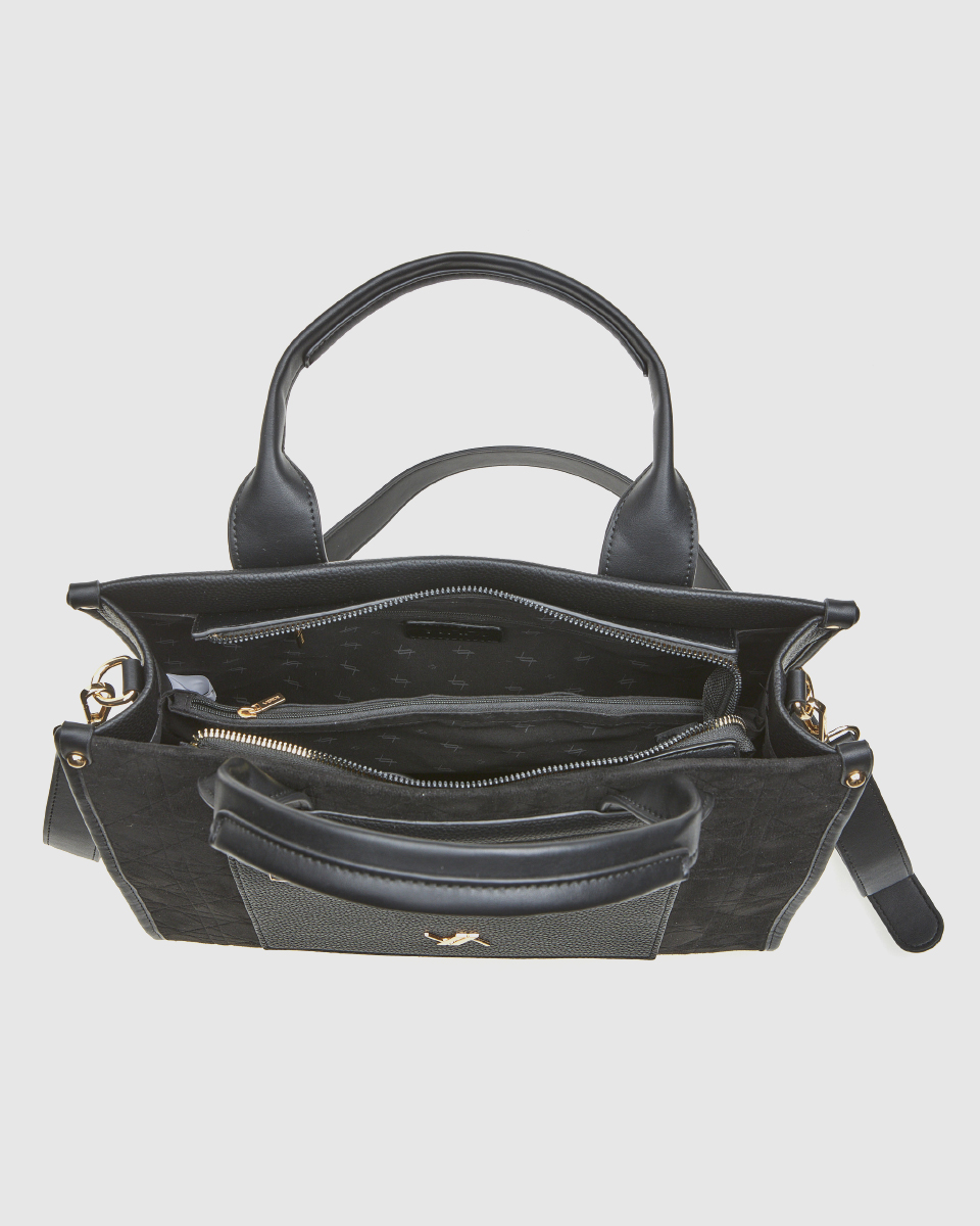 Η κομψότητα συναντά τη χρηστικότητα σε αυτή την εντυπωσιακή τσάντα χειρός από τη συλλογή Verde. Με διακριτική quilted υφή και πρακτικές θήκες, προσφέρει την τέλεια ισορροπία για όλες τις ώρες της ημέρας. Ιδανική για δυναμικές γυναίκες που θέλουν μια elegant αλλά λειτουργική τσάντα.