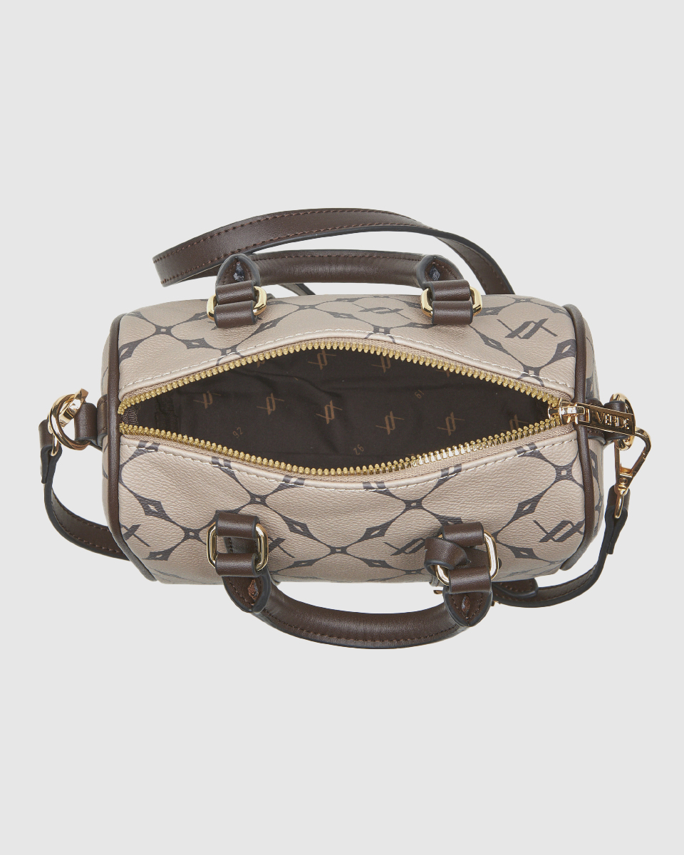 Η συγκεκριμένη γυναικεία τσάντα χειρός/χιαστί Verde συνδυάζει αρμονικά τη μοντέρνα αισθητική με την πρακτικότητα. Το ιδιαίτερο μοτίβο με γεωμετρικά σχέδια και οι καφέ λεπτομέρειες χαρίζουν μοναδική κομψότητα, ενώ το μικρό μέγεθος την καθιστά ιδανική για καθημερινή ή βραδινή χρήση. Μπορεί να φορεθεί τόσο στον ώμο όσο και χιαστί.