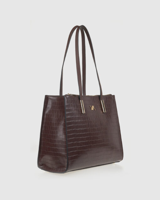 Αριστοκρατική και πρακτική, αυτή η τσάντα ώμου Verde με croco υφή εντυπωσιάζει με την απλότητα και τον δυναμισμό της. Με μεγάλο