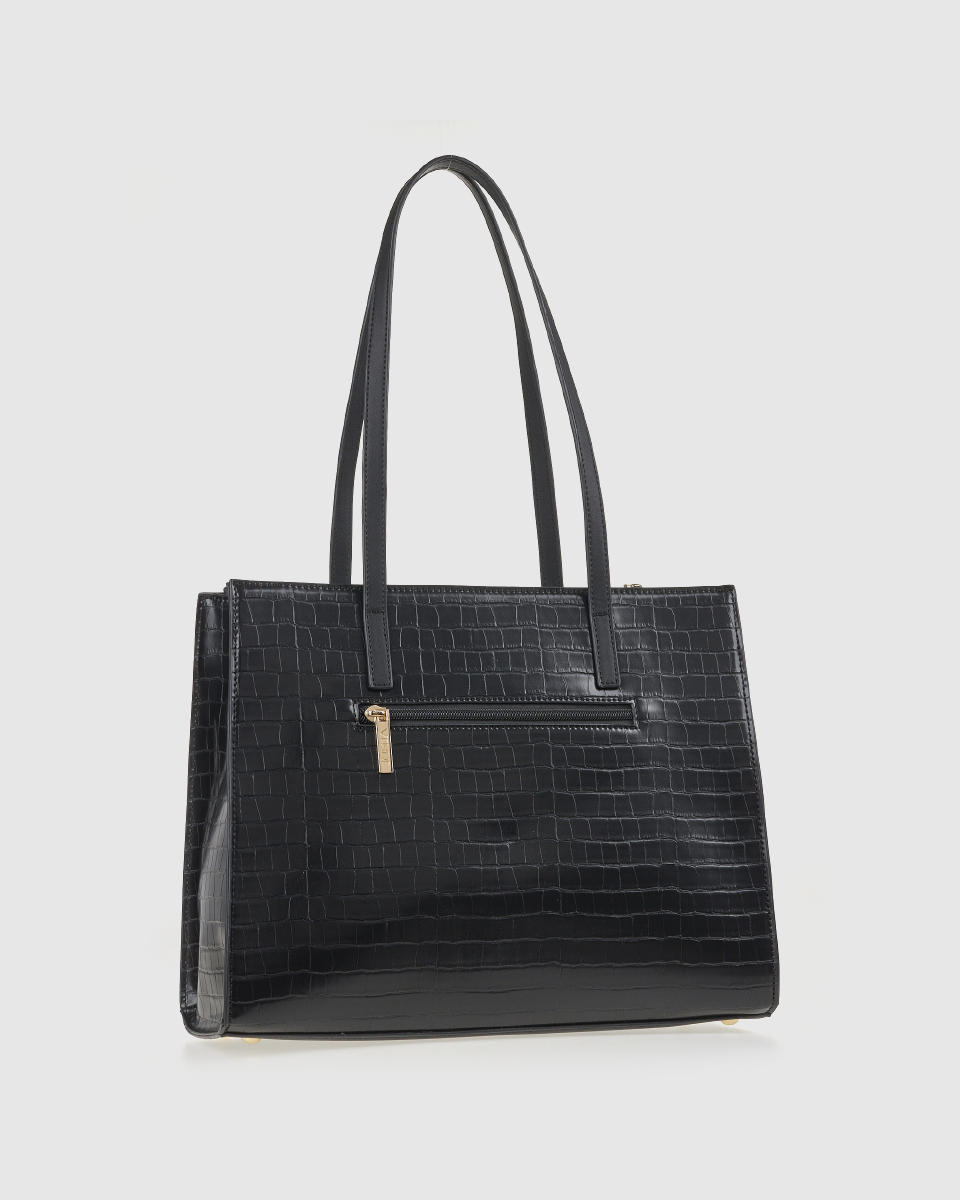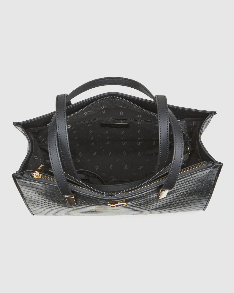 Αριστοκρατική και πρακτική, αυτή η τσάντα ώμου Verde με croco υφή εντυπωσιάζει με την απλότητα και τον δυναμισμό της. Με μεγάλο