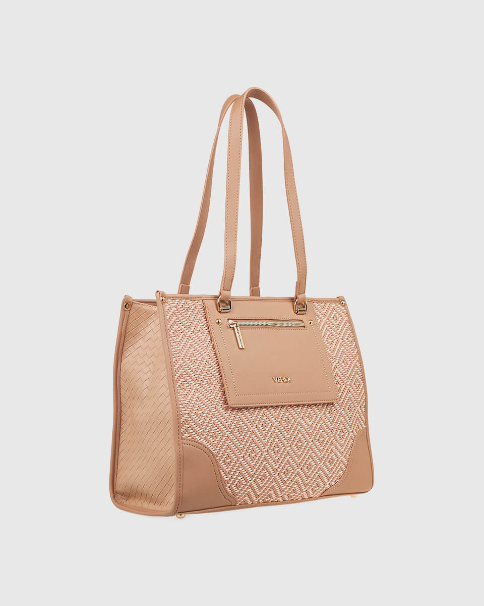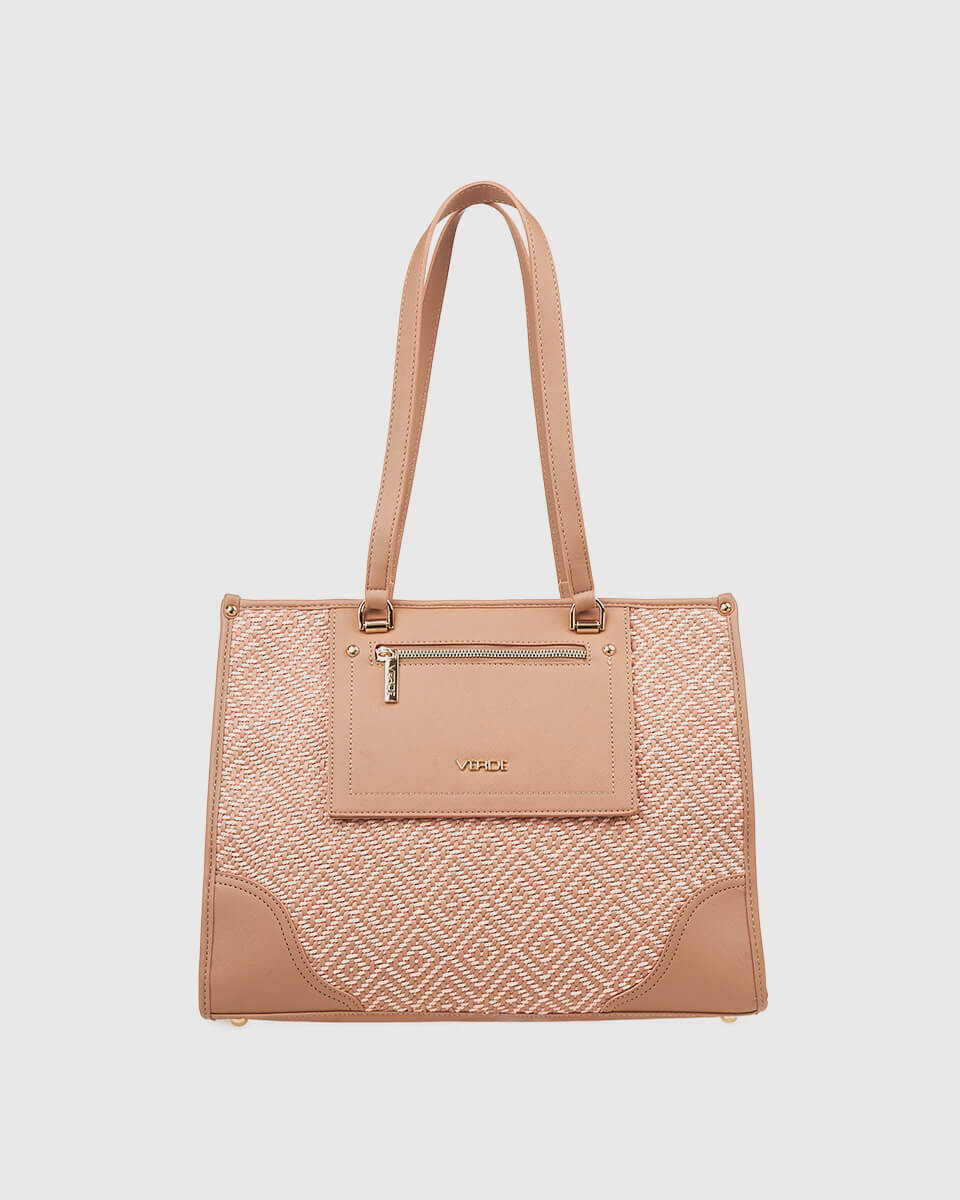 Ανακαλύψτε την γυναικεία τσάντα ώμου Verde από συνθετική ψάθα και οικολογικό δέρμα που συνδυάζει στυλ, πρακτικότητα και οικολογική συνείδηση. Ιδανική για όλες τις ώρες της ημέρας, αυτή η κομψή και μοντέρνα τσάντα ώμου προσφέρει άνεση και οργάνωση, χάρη στους έξυπνους αποθηκευτικούς χώρους της.