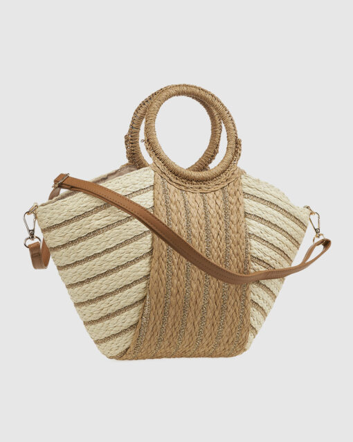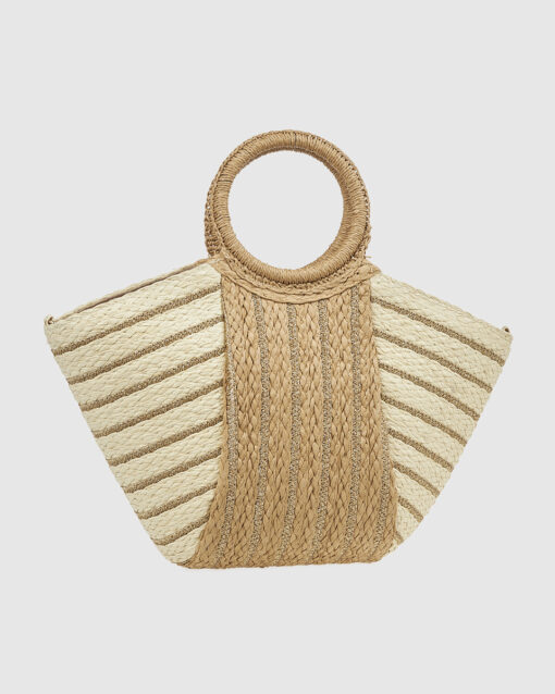 Γυναικεία Ψάθινη Τσάντα Χειρός Verde 48-0279 Μπεζ