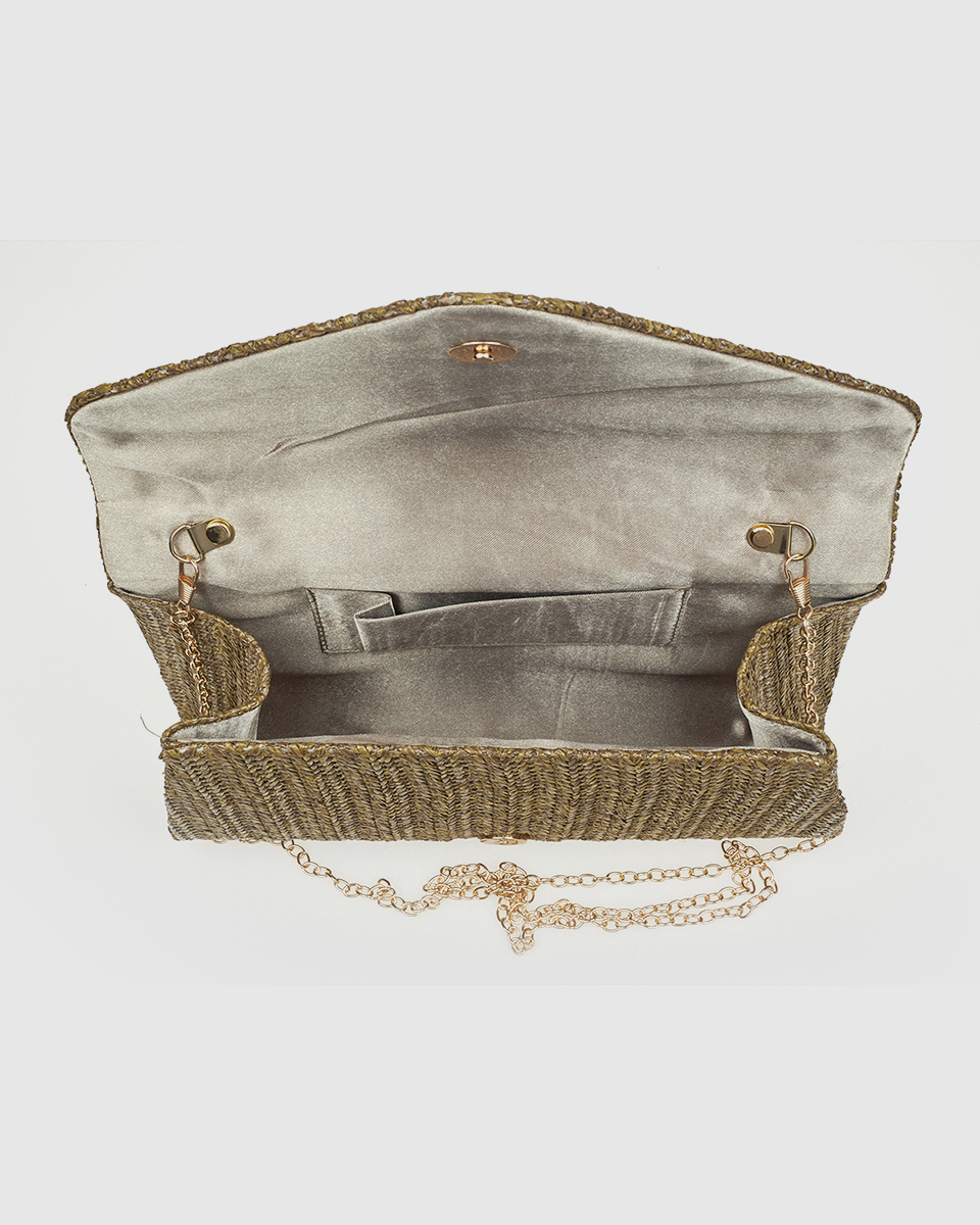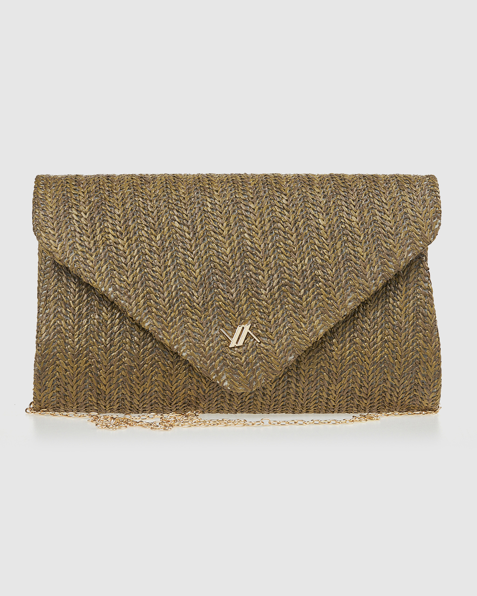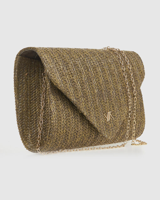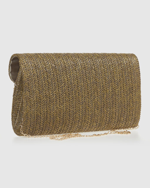 Απογειώστε το στυλ σας με το γυναικείο αμπιγιέ τσαντάκι Verde από συνθετική ψάθα σε χακί χρώμα, το απόλυτο αξεσουάρ για κάθε επίσημη περίσταση. Ο διαχρονικός σχεδιασμός του, σε συνδυασμό με την εξαιρετική ποιότητα υλικών, προσφέρει την τέλεια ισορροπία ανάμεσα στην πολυτέλεια και την πρακτικότητα.