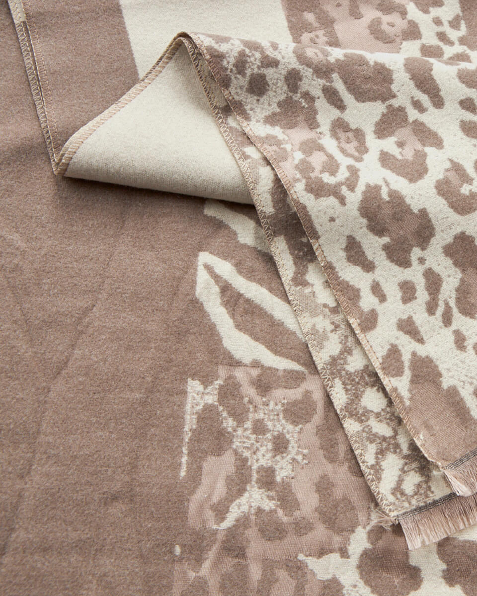Ένα κομψό κασκόλ με animal print σε δύο αποχρώσεις —μπεζ και καφέ— που προσφέρει στυλ χωρίς υπερβολές. Ο συνδυασμός του λεοπάρ μοτίβου με τις διακριτικές οριζόντιες ρίγες το καθιστά διαχρονικά μοντέρνο. Η απαλή υφή και η μεγάλη διάστασή του εξασφαλίζουν ζεστασιά και ευελιξία στο styling, είτε το φορέσετε τυλιγμένο είτε ριχτό.
