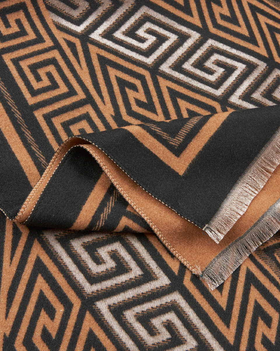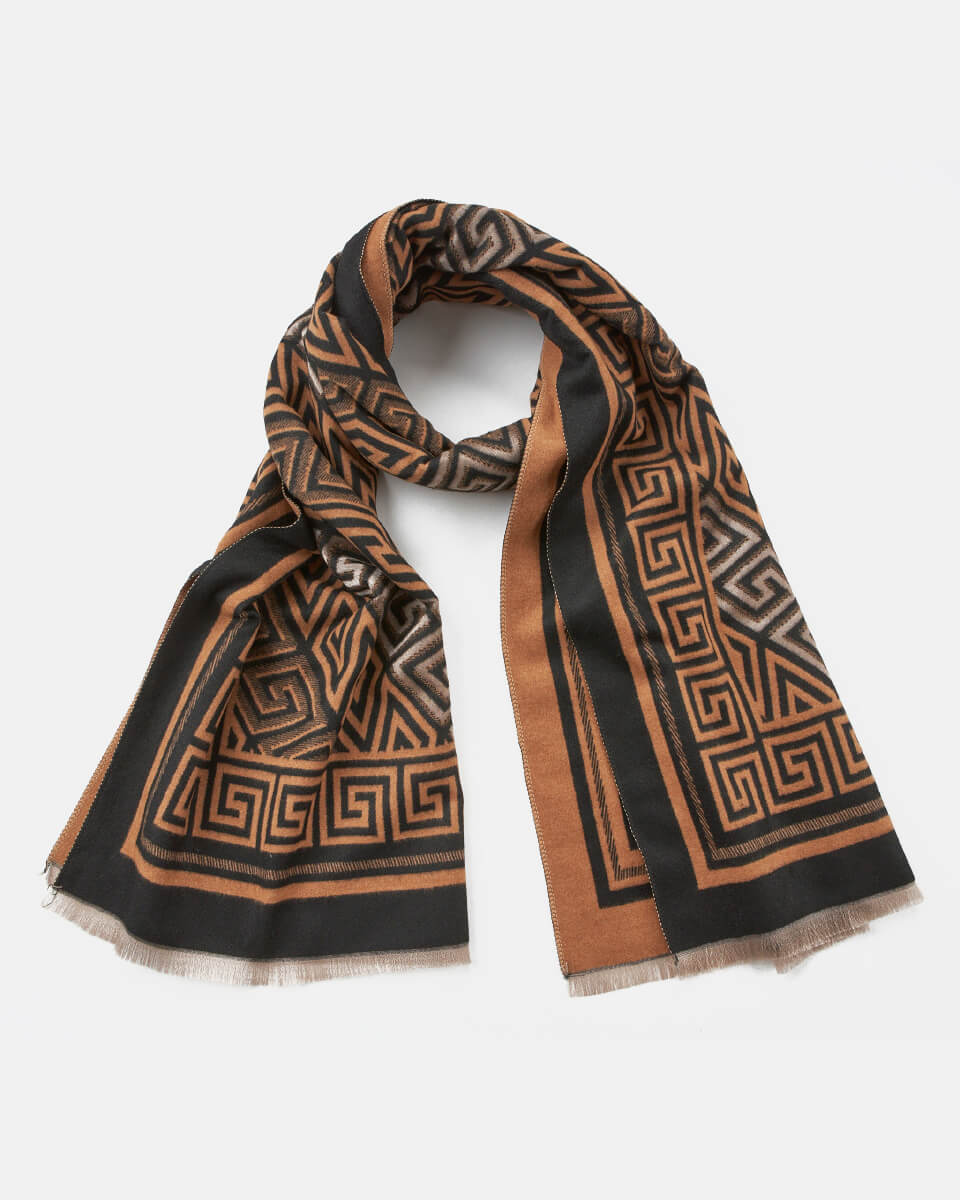 Κλασική κομψότητα με έμπνευση από την αρχαιότητα. Το συγκεκριμένο κασκόλ της Verde ξεχωρίζει για το γεωμετρικό του μοτίβο τύπου Greek Key που αποπνέει διαχρονικότητα. Η διχρωμία και η λεπτή φρατζόλα στο τελείωμα προσθέτουν μια επιπλέον αίσθηση πολυτέλειας, ενώ το μαλακό ύφασμα προσφέρει άνεση και ζεστασιά. Ιδανική επιλογή για γυναίκες που αγαπούν τις καθαρές γραμμές και το σοφιστικέ στυλ.