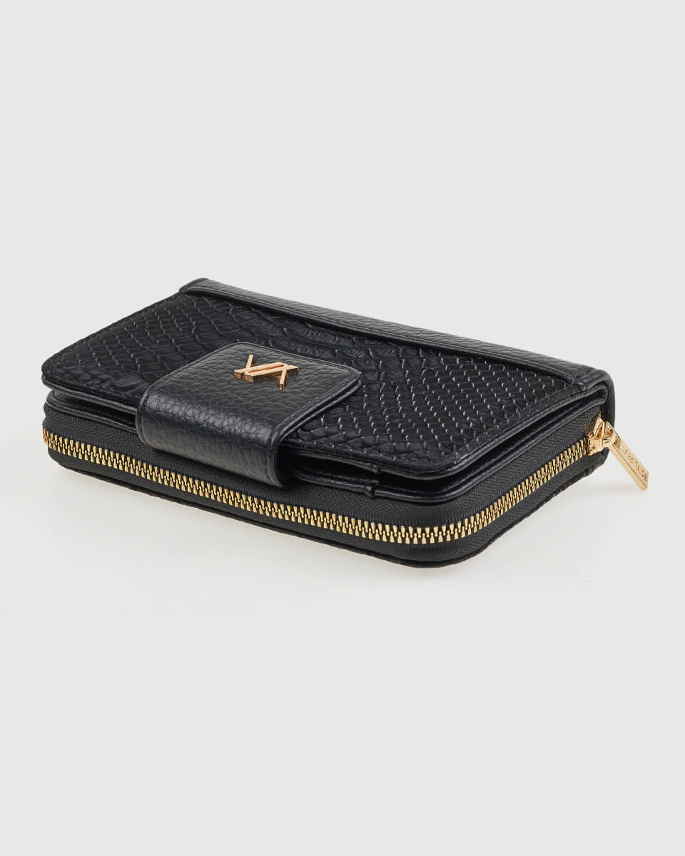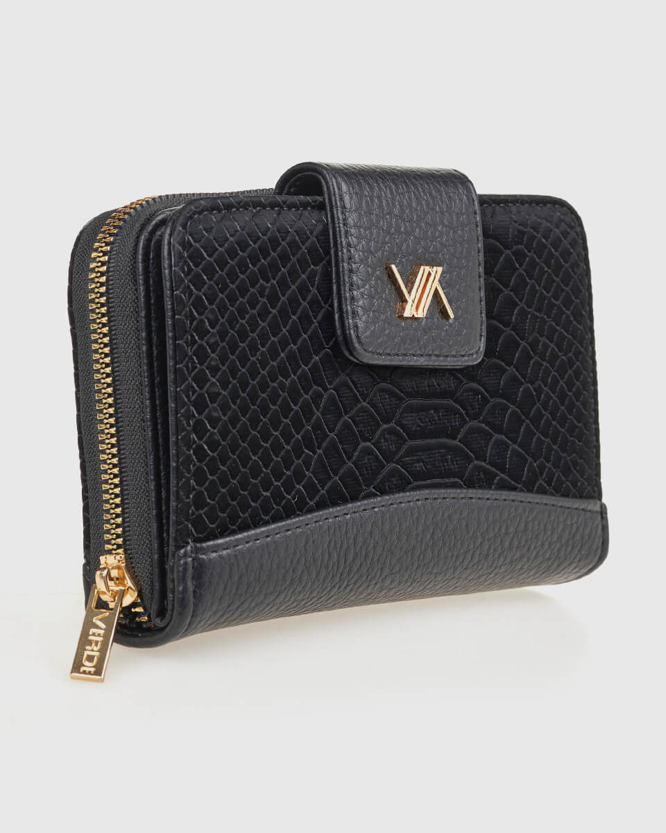 Κομψό και διαχρονικό, αυτό το γυναικείο πορτοφόλι Verde συνδυάζει ανάγλυφη υφή τύπου animal print με λεία υφή, δημιουργώντας ένα μοντέρνο αποτέλεσμα με χαρακτήρα. Διαθέτει πρακτική εσωτερική οργάνωση και ιδανικό μέγεθος για καθημερινή χρήση, ενώ το χρυσό λογότυπο προσθέτει έναν διακριτικό τόνο πολυτέλειας.