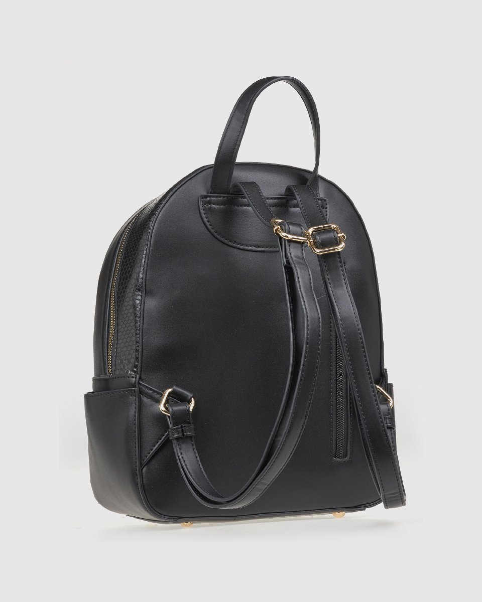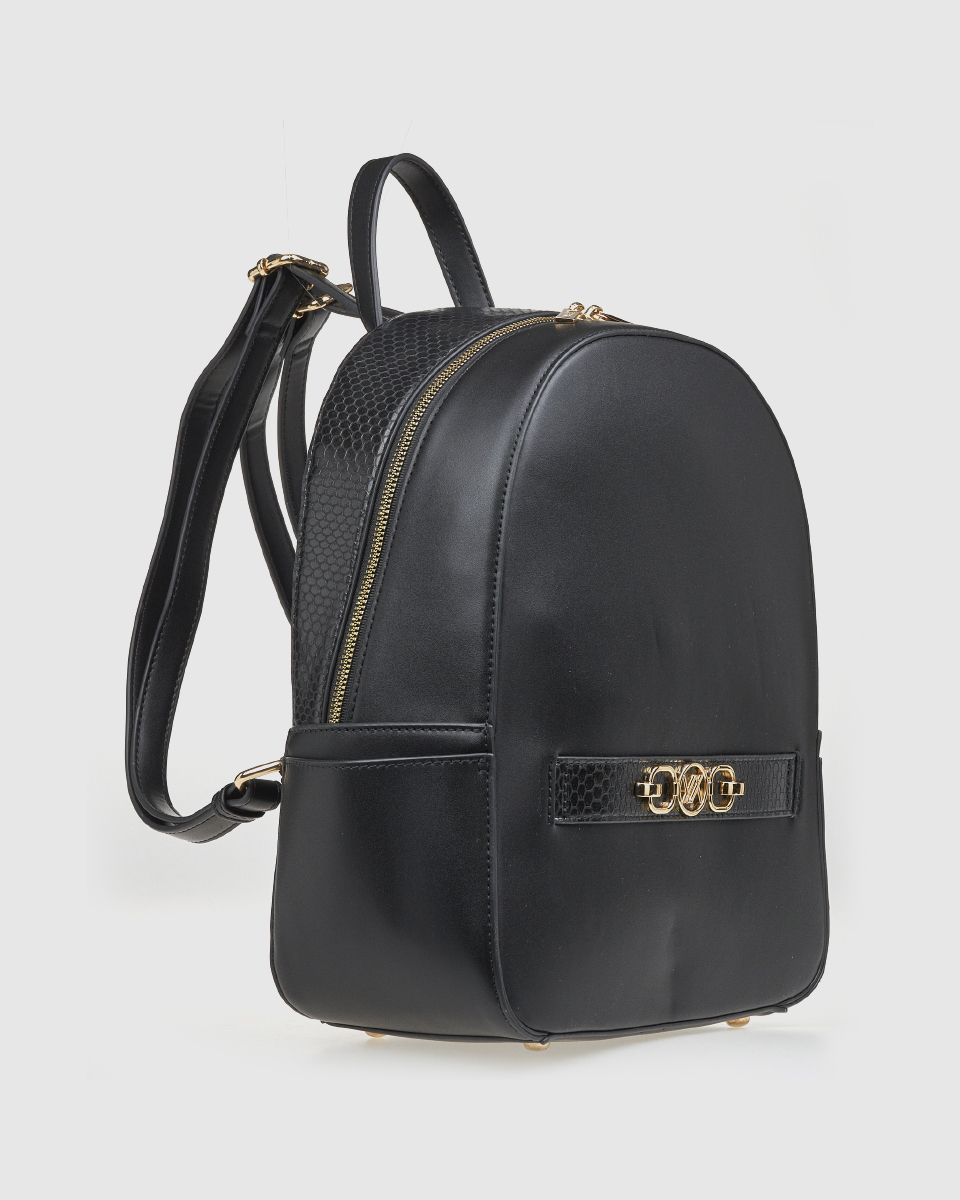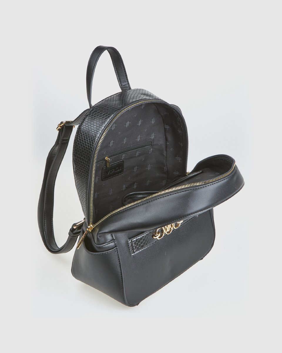 Η γυναικεία τσάντα πλάτης Verde εντυπωσιάζει με τον μοντέρνο σχεδιασμό της και την πρακτική της κατασκευή. Το φίνο φινίρισμα, οι μεταλλικές λεπτομέρειες και η ανάγλυφη λωρίδα με αγκράφα στο μπροστινό μέρος της χαρίζουν ιδιαίτερο χαρακτήρα. Ένα αξεσουάρ που ενσωματώνει την άνεση και την κομψότητα, ιδανικό για γυναίκες που βρίσκονται σε κίνηση.