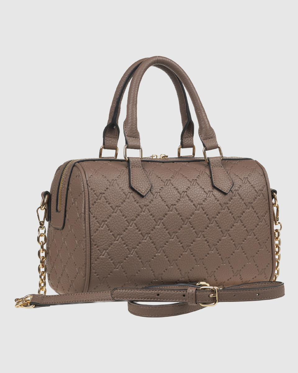 Με κλασική αλλά εντυπωσιακή σιλουέτα, αυτή η τσάντα χειρός της Verde αποτελεί ένα ξεχωριστό κομμάτι για τις καθημερινές σας εμφανίσεις. Το ανάγλυφο μοτίβο με το μονόγραμμα δίνει μια αίσθηση πολυτέλειας, ενώ η μεταλλική αλυσίδα στον ιμάντα προσθέτει δυναμισμό και κομψότητα. Ιδανική για πρωινές και απογευματινές εξόδους, θα σας συνοδεύσει με στυλ από το γραφείο μέχρι τη βόλτα στην πόλη.