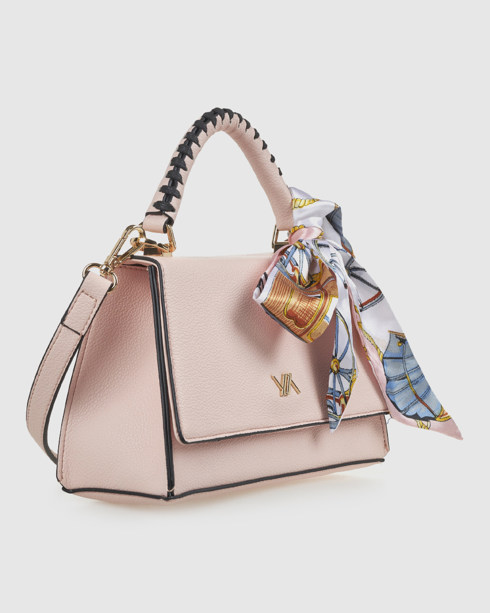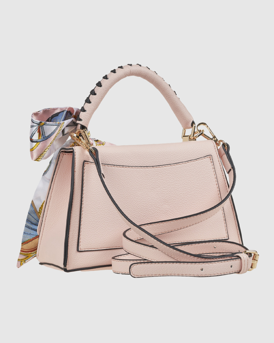 Η σταθερή χειρολαβή προσφέρει κομψό κράτημα, ενώ το αποσπώμενο και ρυθμιζόμενο λουράκι σας επιτρέπει να τη φορέσετε και χιαστί. Το διακοσμητικό φουλάρι στη χειρολαβή προσθέτει μία fashion πινελιά που κάνει τη διαφορά.