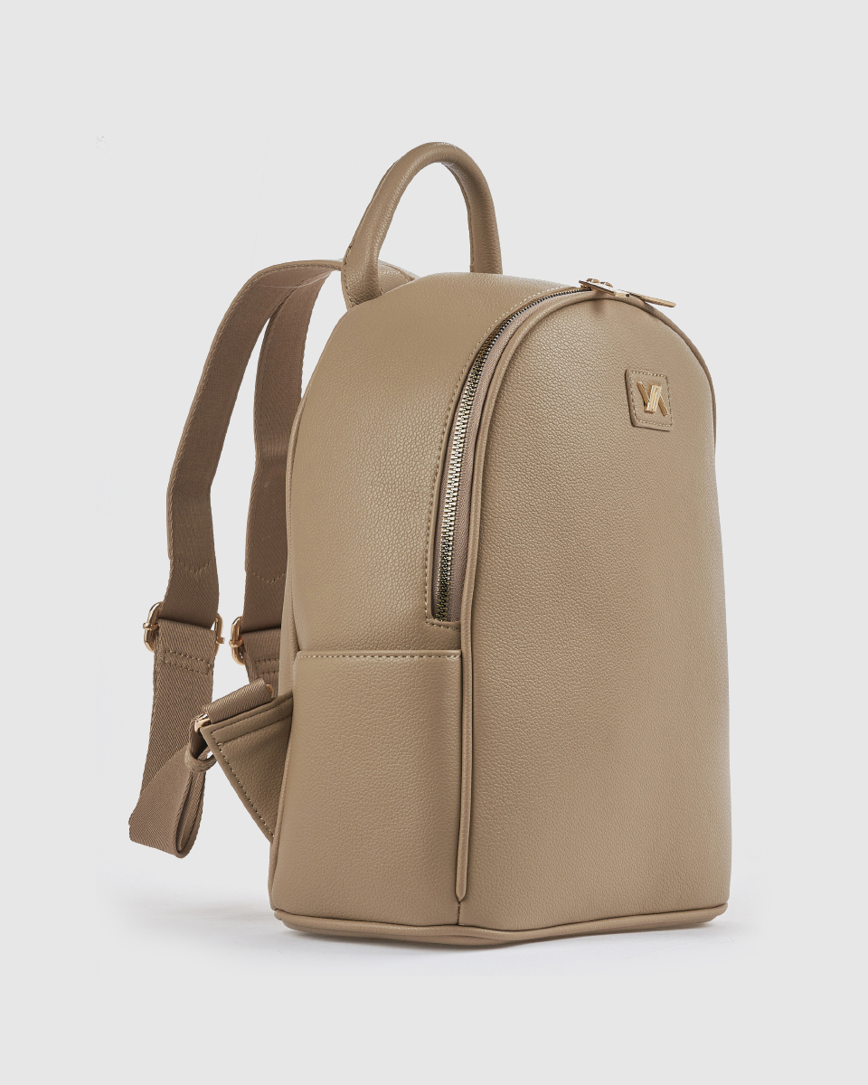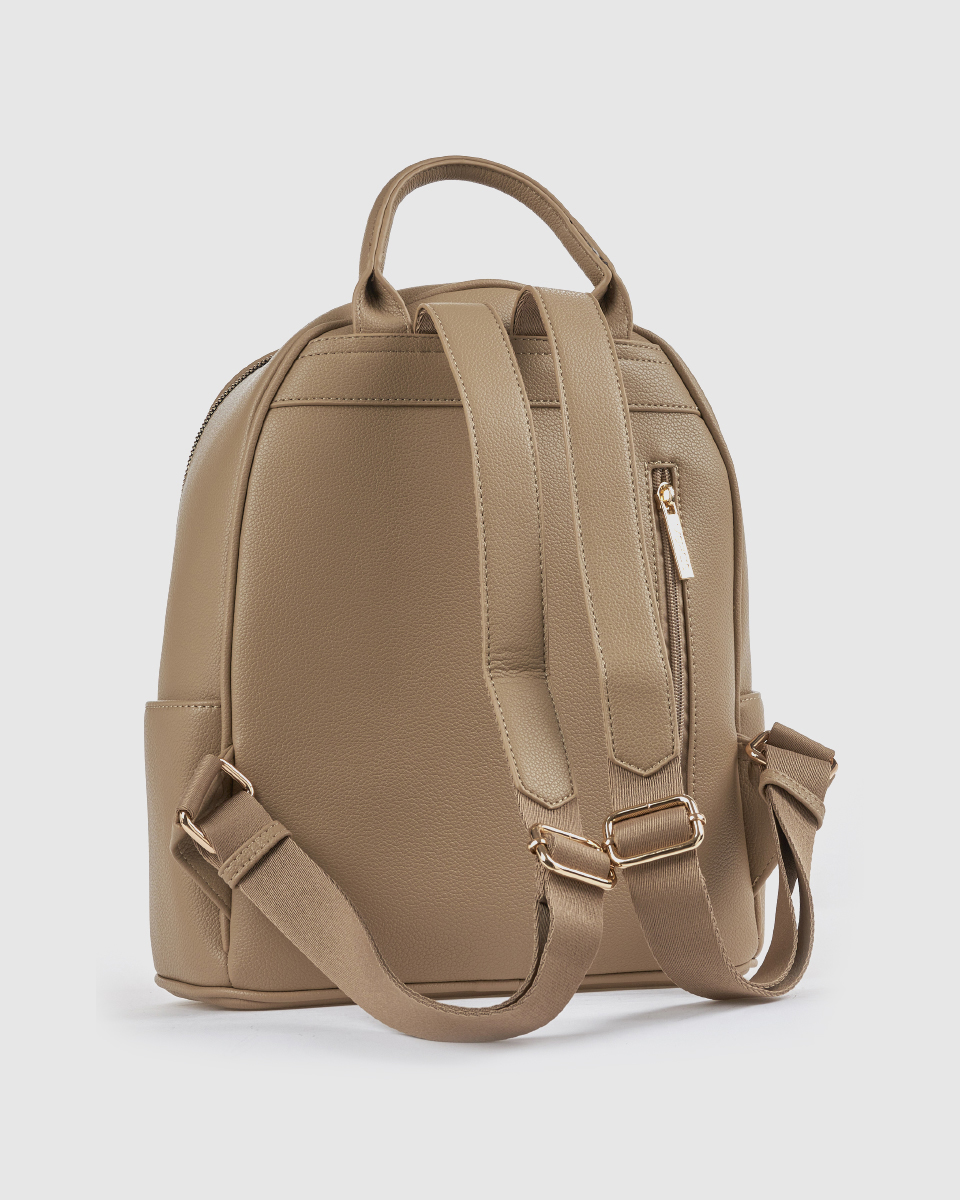 Η μπεζ απόχρωση προσφέρει φωτεινότητα και ευελιξία, ενώ παράλληλα ταιριάζει εύκολα με κάθε outfit. Επιπλέον, τα χρυσά μεταλλικά στοιχεία ενισχύουν τον elegant χαρακτήρα του σακιδίου, προσθέτοντας μία διακριτική πινελιά πολυτέλειας.