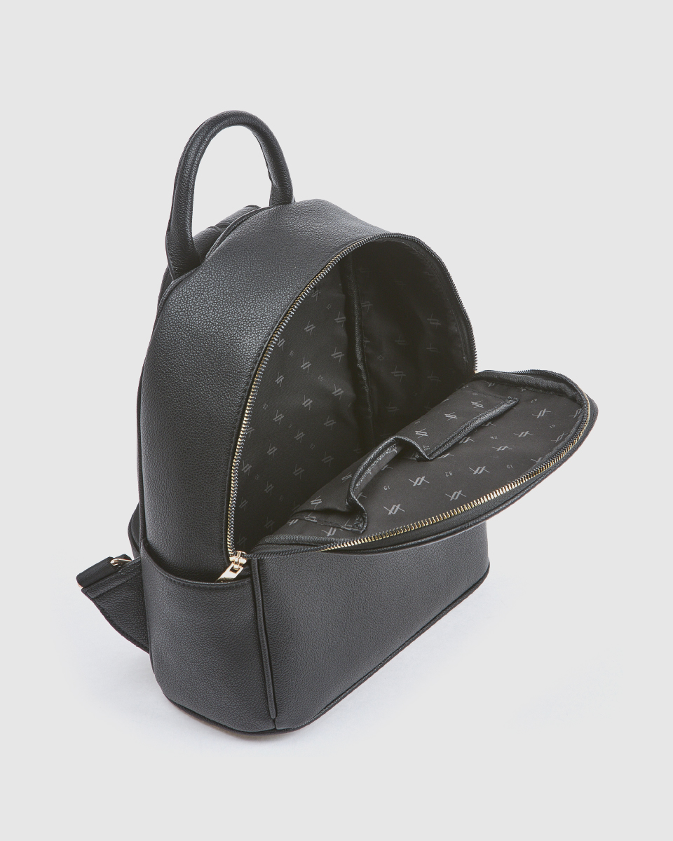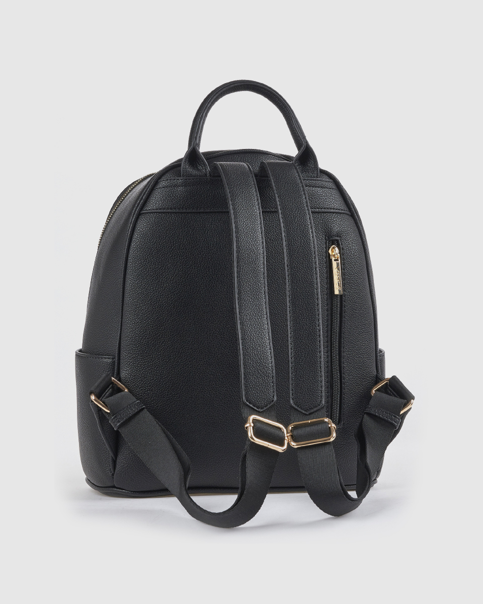 Το μαύρο χρώμα αποτελεί μία διαχρονική επιλογή που προσαρμόζεται εύκολα σε κάθε outfit. Επιπλέον, τα χρυσά μεταλλικά στοιχεία δημιουργούν μία κομψή αντίθεση, αναδεικνύοντας τον premium χαρακτήρα του σακιδίου.