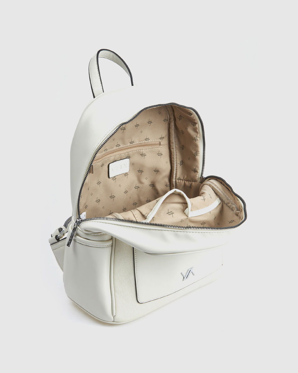 Ανακαλύψτε το γυναικείο σακίδιο πλάτης Verde σε άσπρο με πρακτικές θήκες και κομψό design. Διαστάσεις: 29,5 εκ. x 34,5 εκ. x 15 εκ.