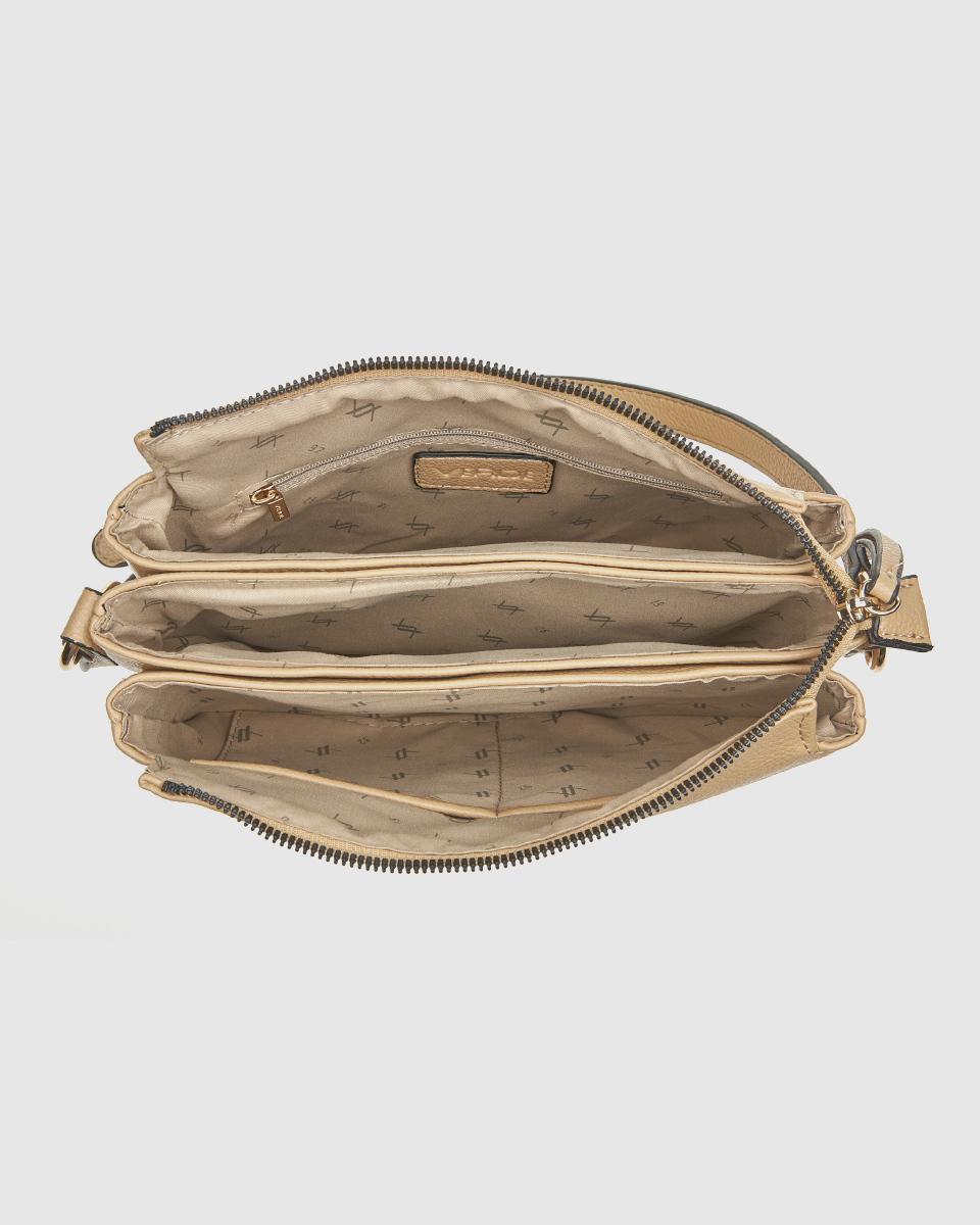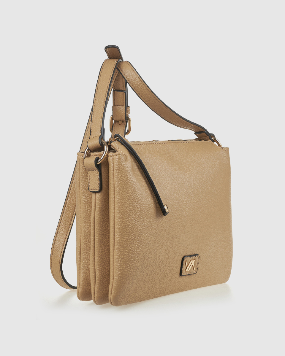 Ανακαλύψτε τη γυναικεία τσάντα χιαστί Verde σε μπεζ χρώμα με πρακτικές θήκες και κομψό σχεδιασμό. Διαστάσεις: 25.5 εκ. x 19 εκ. x 4 εκ.