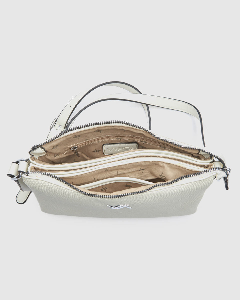 Ανακαλύψτε την κομψότητα και την πρακτικότητα μέσα από τη γυναικεία τσάντα χιαστί Verde σε άσπρη απόχρωση. Ο minimal σχεδιασμός της συνδυάζεται με σύγχρονες λεπτομέρειες, δημιουργώντας ένα αξεσουάρ που ταιριάζει σε κάθε καθημερινή ανάγκη.