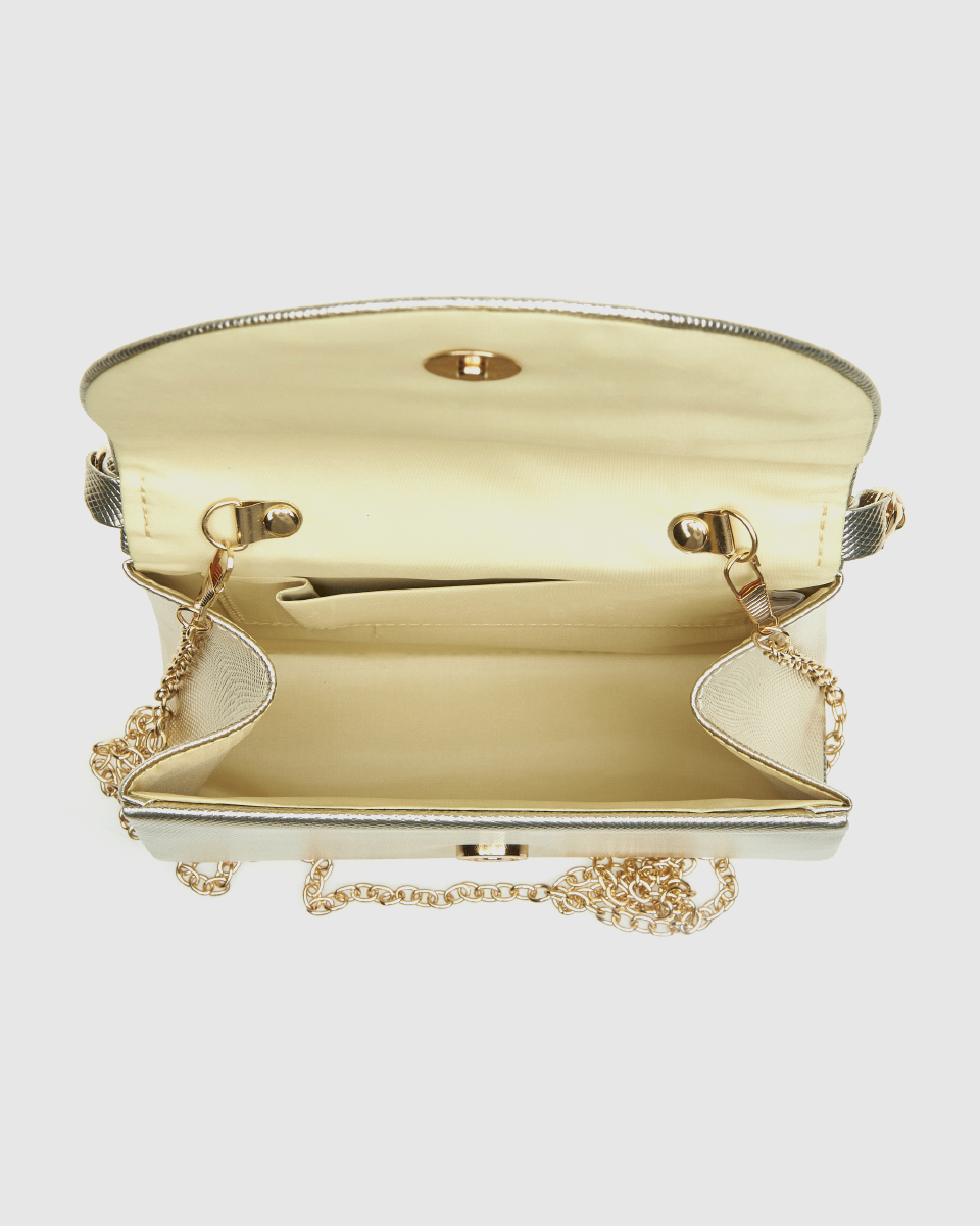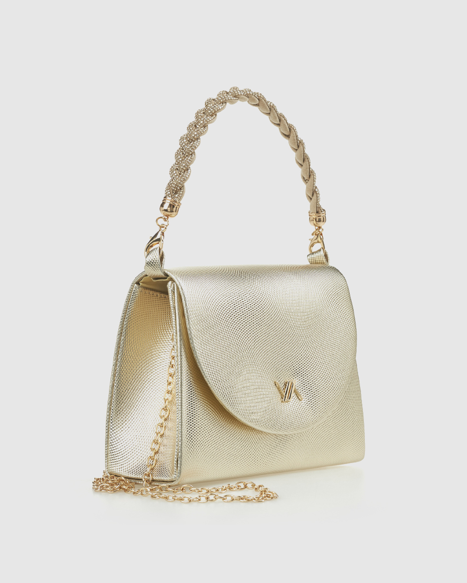 Το αμπιγιέ clutch Verde διαθέτει αποσπώμενη χειρολαβή αλλά και αποσπώμενο αλυσιδάκι ώμου, ώστε να προσαρμόζεται εύκολα σε διαφορετικές περιστάσεις. Μπορείτε να το κρατήσετε στο χέρι για μια κομψή εμφάνιση ή να το φορέσετε στον ώμο για μεγαλύτερη άνεση κατά τη διάρκεια μιας εκδήλωσης.