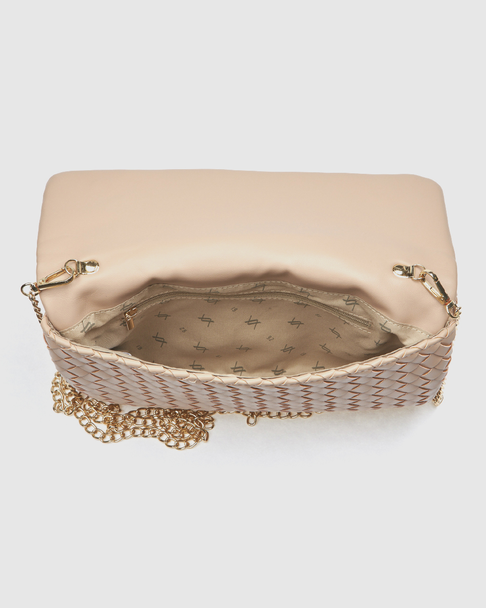 Η αποσπώμενη χρυσή αλυσίδα ώμου επιτρέπει ευελιξία στη χρήση, ώστε να προσαρμόζετε την τσάντα ανάλογα με την περίσταση. Μπορείτε να τη χρησιμοποιήσετε ως clutch στο χέρι για μια πιο επίσημη εμφάνιση ή να τη φορέσετε στον ώμο για μεγαλύτερη άνεση.
