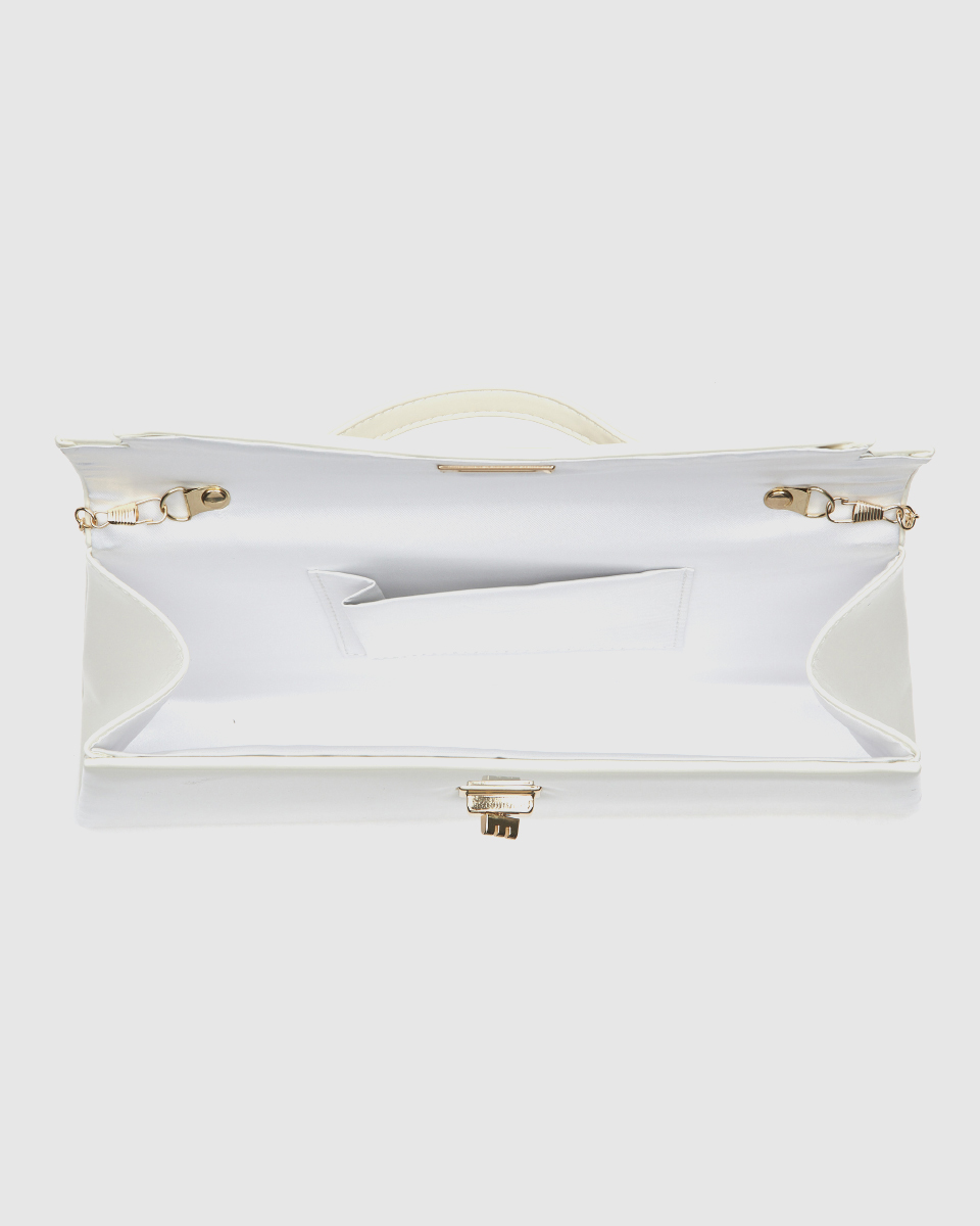 Παράλληλα, ο ευρύχωρος εσωτερικός χώρος της τσάντας επιτρέπει την εύκολη μεταφορά των απαραίτητων αντικειμένων της βραδιάς όπως κινητό τηλέφωνο, μικρό πορτοφόλι, καλλυντικά και προσωπικά αντικείμενα.
