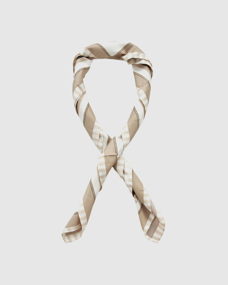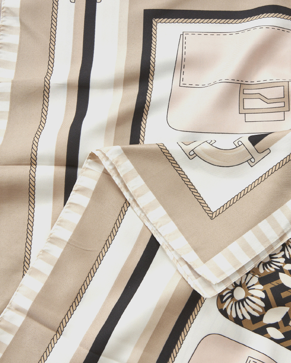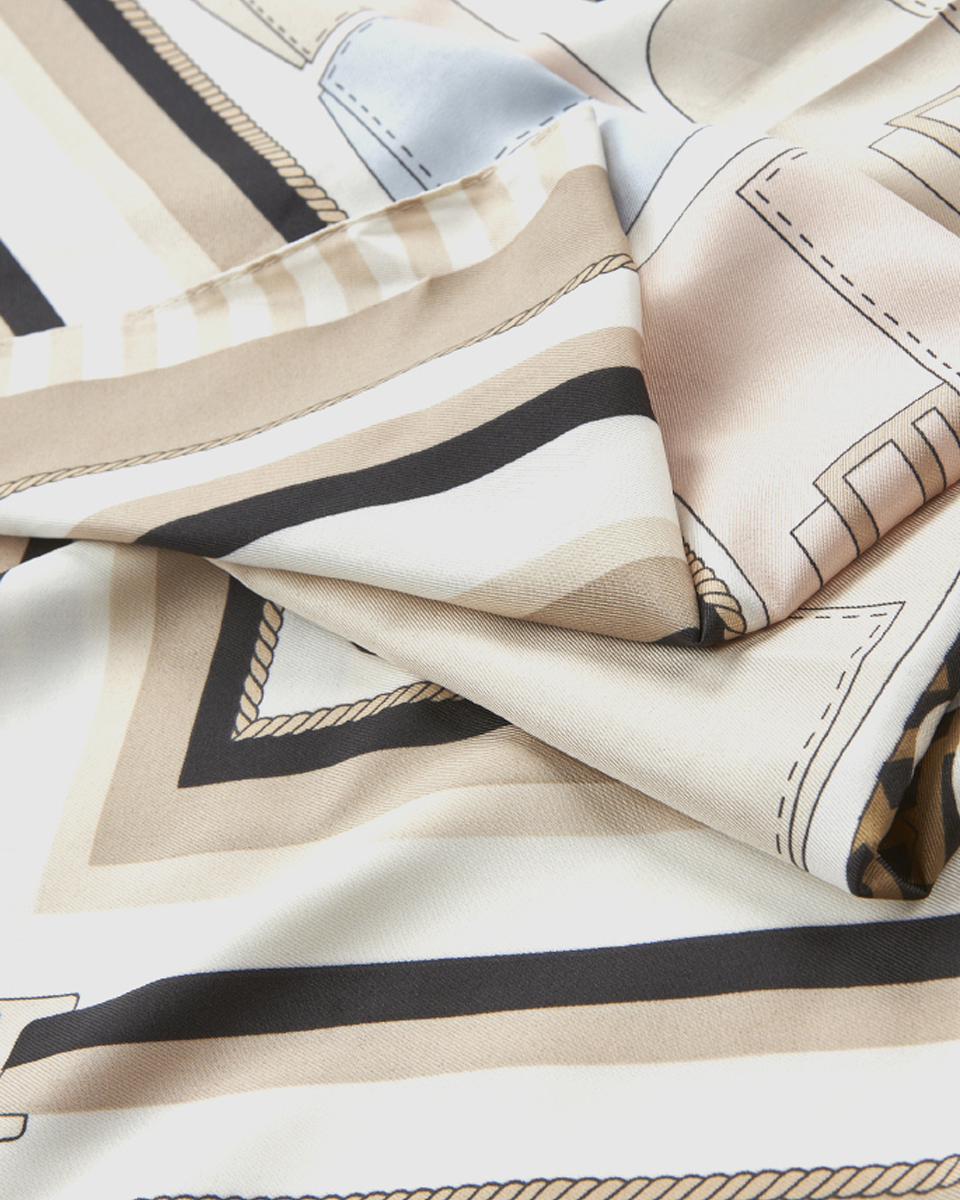 Χάρη στις τετράγωνες διαστάσεις των 90 εκ. x 90 εκ., το μαντήλι προσφέρει μεγάλη ευελιξία στον τρόπο που μπορεί να φορεθεί. Μπορεί να τοποθετηθεί στον λαιμό, στα μαλλιά, στον καρπό ή ακόμα και ως διακοσμητικό στοιχείο σε μια τσάντα, προσθέτοντας μια κομψή πινελιά στο στυλ σας.