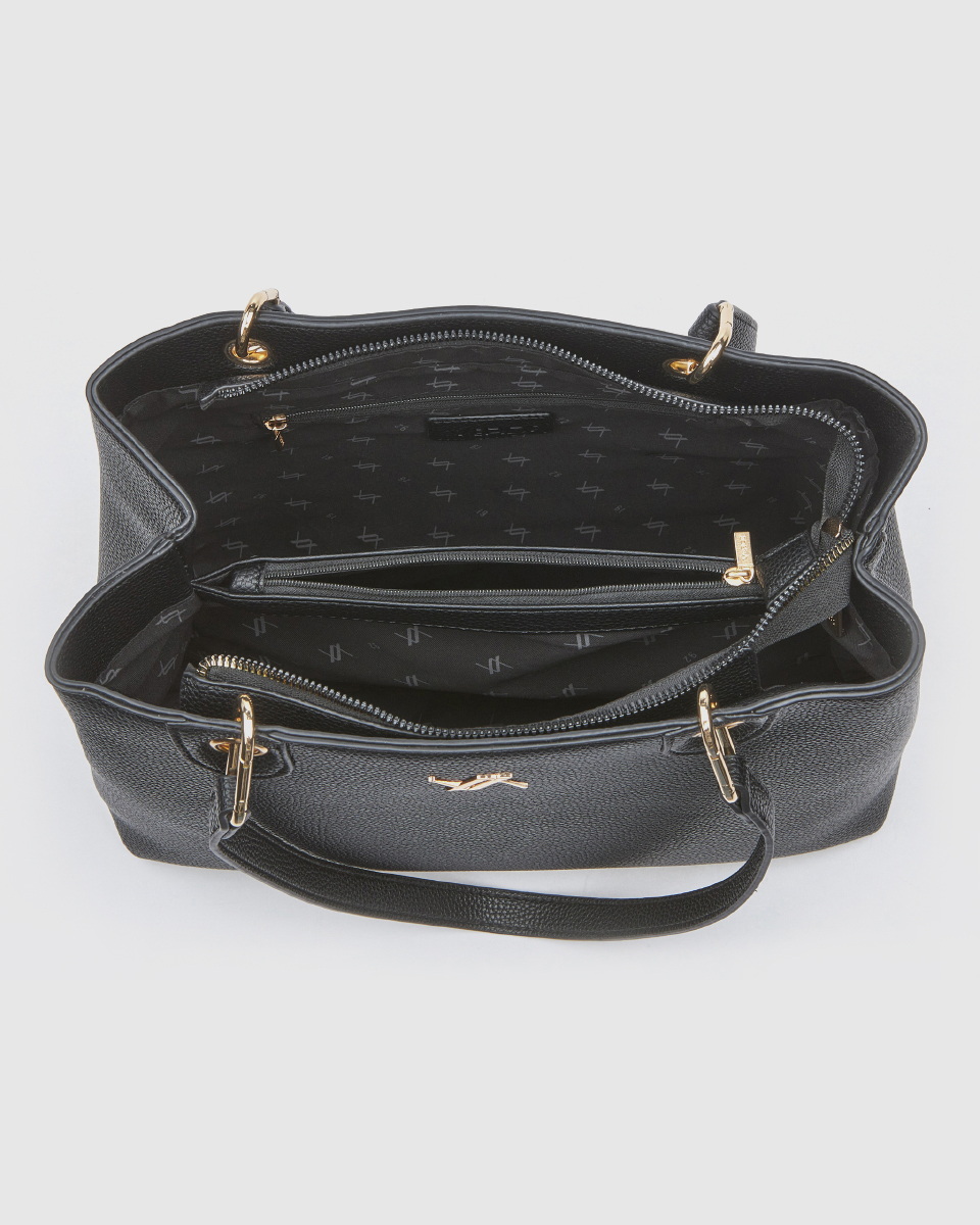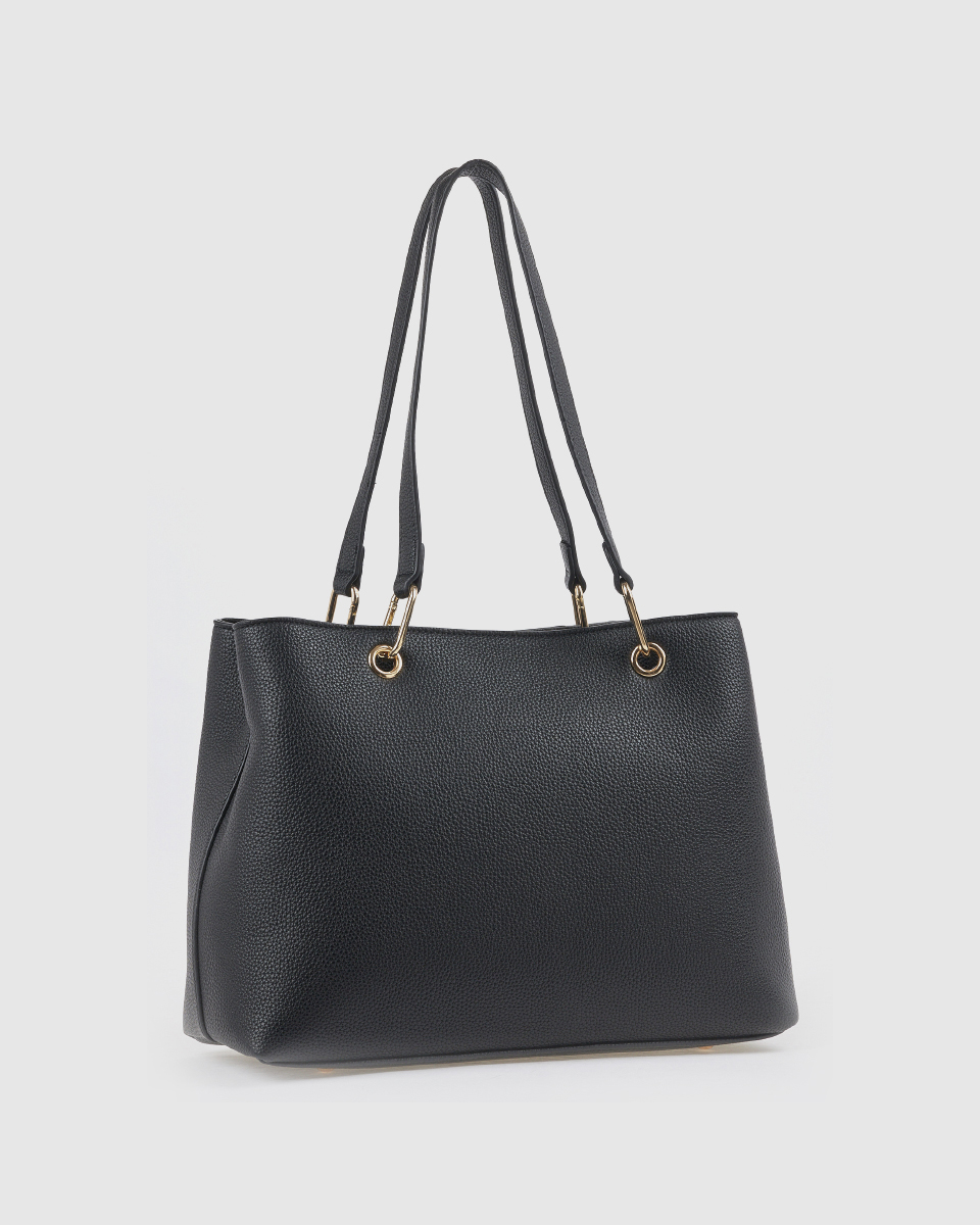 Η μαύρη τσάντα ώμου αποτελεί βασικό κομμάτι για κάθε γκαρνταρόμπα. Συνδυάστε τη με επαγγελματικά σύνολα για ένα κομψό και δυναμικό look στο γραφείο.