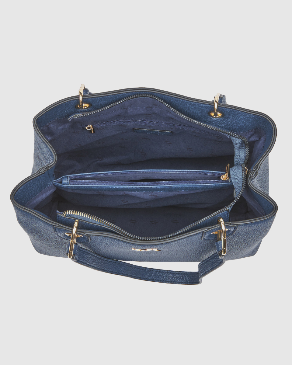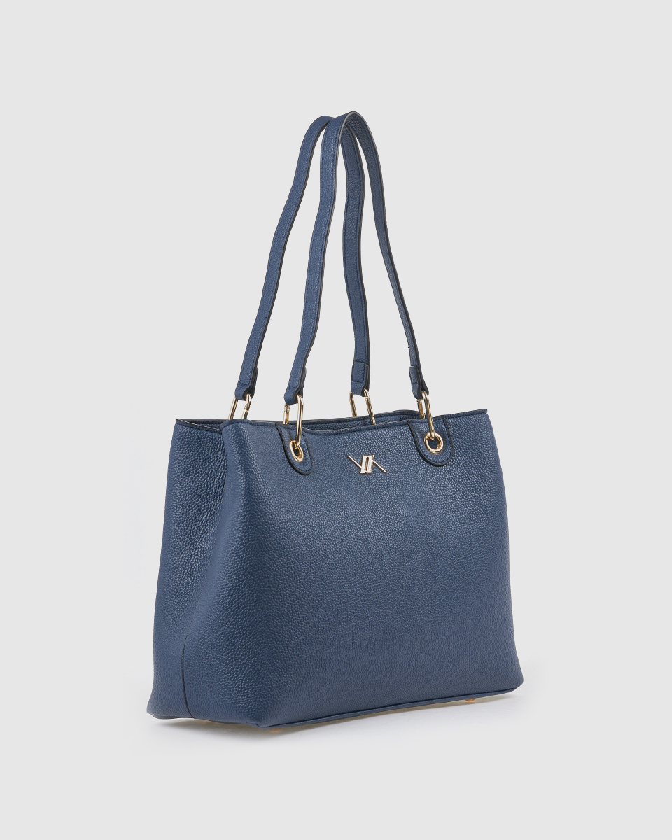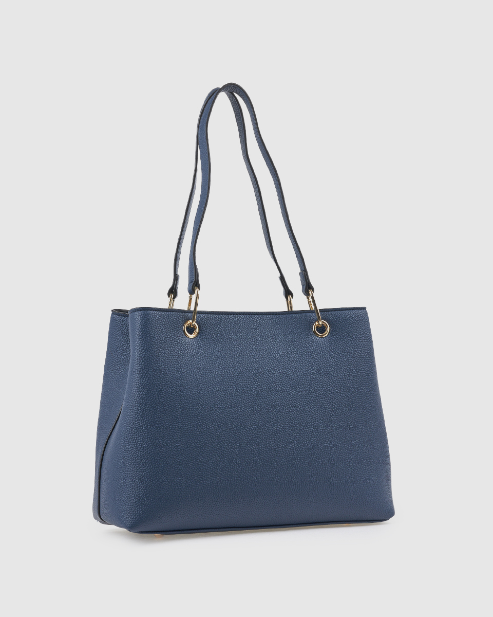 Η μπλε τσάντα ώμου αποτελεί εξαιρετική επιλογή για καθημερινά looks με χαρακτήρα. Συνδυάστε τη με λευκά ή γκρι σύνολα για ένα καθαρό και κομψό αποτέλεσμα.