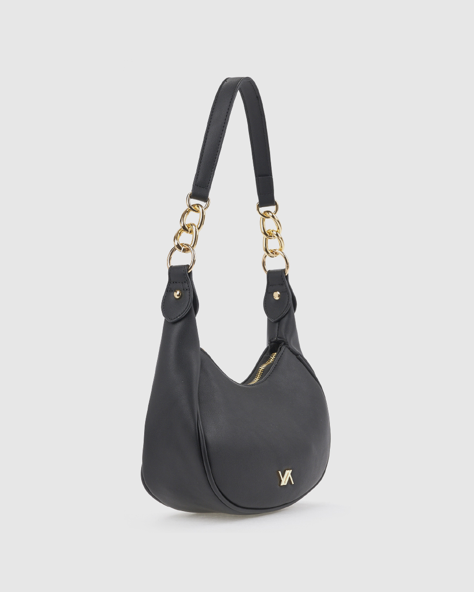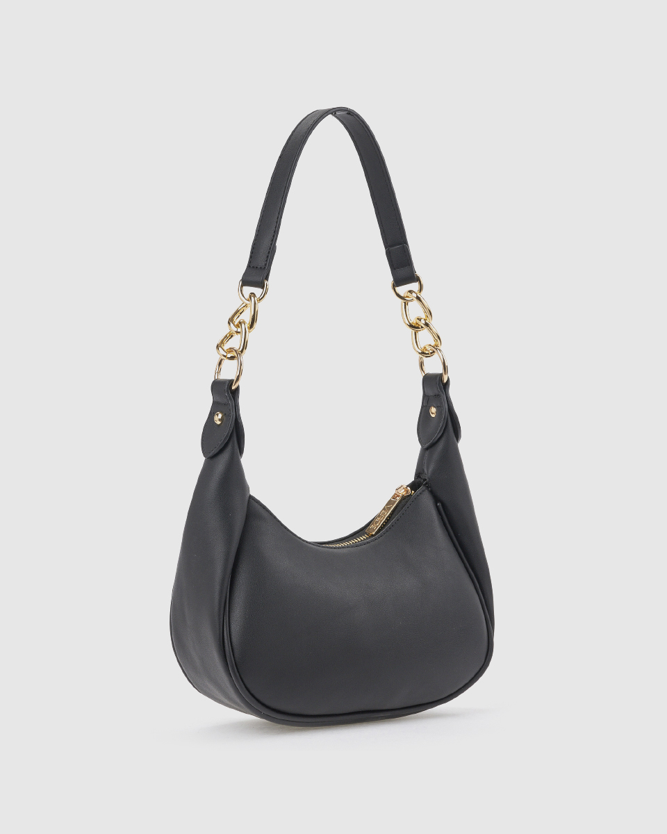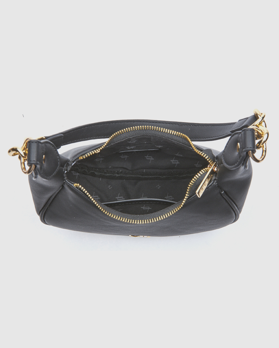 Η μαύρη τσάντα ώμου αποτελεί βασικό κομμάτι κάθε γκαρνταρόμπας. Συνδυάστε τη με total black σύνολα για ένα κομψό και δυναμικό αποτέλεσμα.