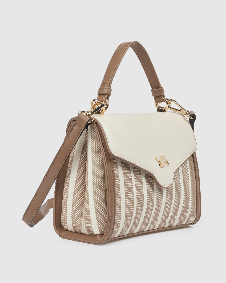 Η μπεζ τσάντα χειρός αποτελεί ιδανική επιλογή για καθημερινές εμφανίσεις. Συνδυάστε τη με ουδέτερους τόνους για ένα κομψό και ισορροπημένο αποτέλεσμα.