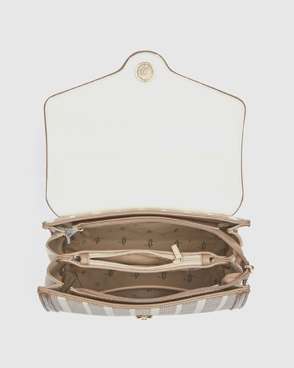 Η τσάντα διαθέτει δύο βασικές θέσεις που κλείνουν με φερμουάρ, προσφέροντας ασφάλεια και άνεση στην καθημερινότητα. Το καπάκι με μαγνητικό κούμπωμα εξασφαλίζει εύκολη πρόσβαση, διατηρώντας παράλληλα το περιεχόμενο προστατευμένο.