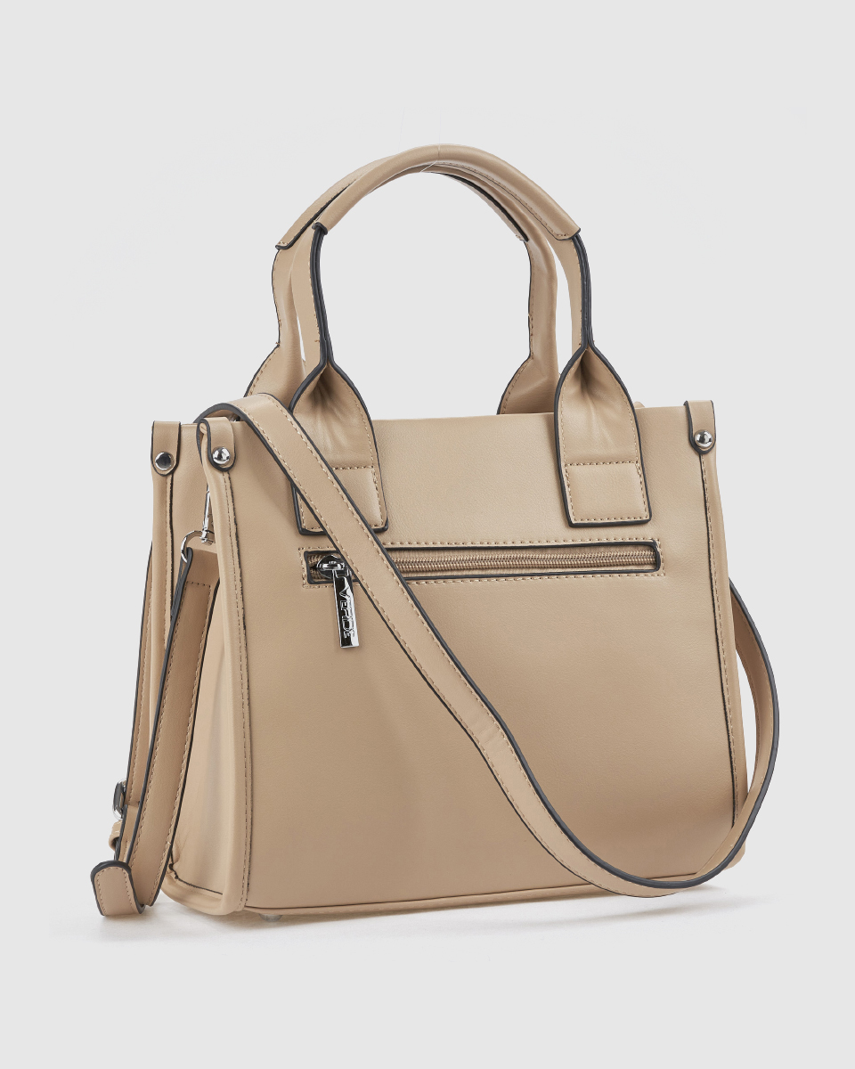 Η μπεζ τσάντα χειρός αποτελεί ιδανική επιλογή για καθημερινές εμφανίσεις. Συνδυάστε τη με ουδέτερους ή γήινους τόνους για ένα αρμονικό αποτέλεσμα.