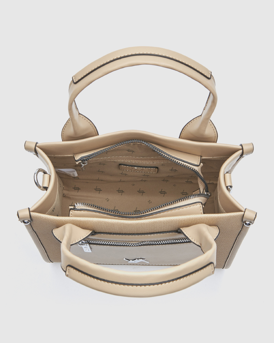 Η μπεζ απόχρωση προσφέρει ζεστασιά και διαχρονικότητα, ενώ παράλληλα συνδυάζεται εύκολα με κάθε outfit. Επιπλέον, τα διακριτικά μεταλλικά στοιχεία ενισχύουν τον elegant χαρακτήρα της τσάντας, προσθέτοντας μία σύγχρονη πινελιά.