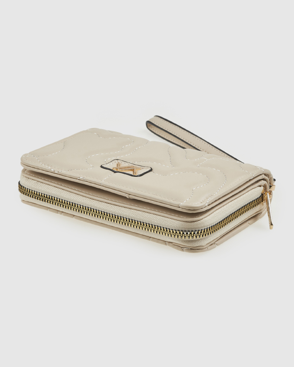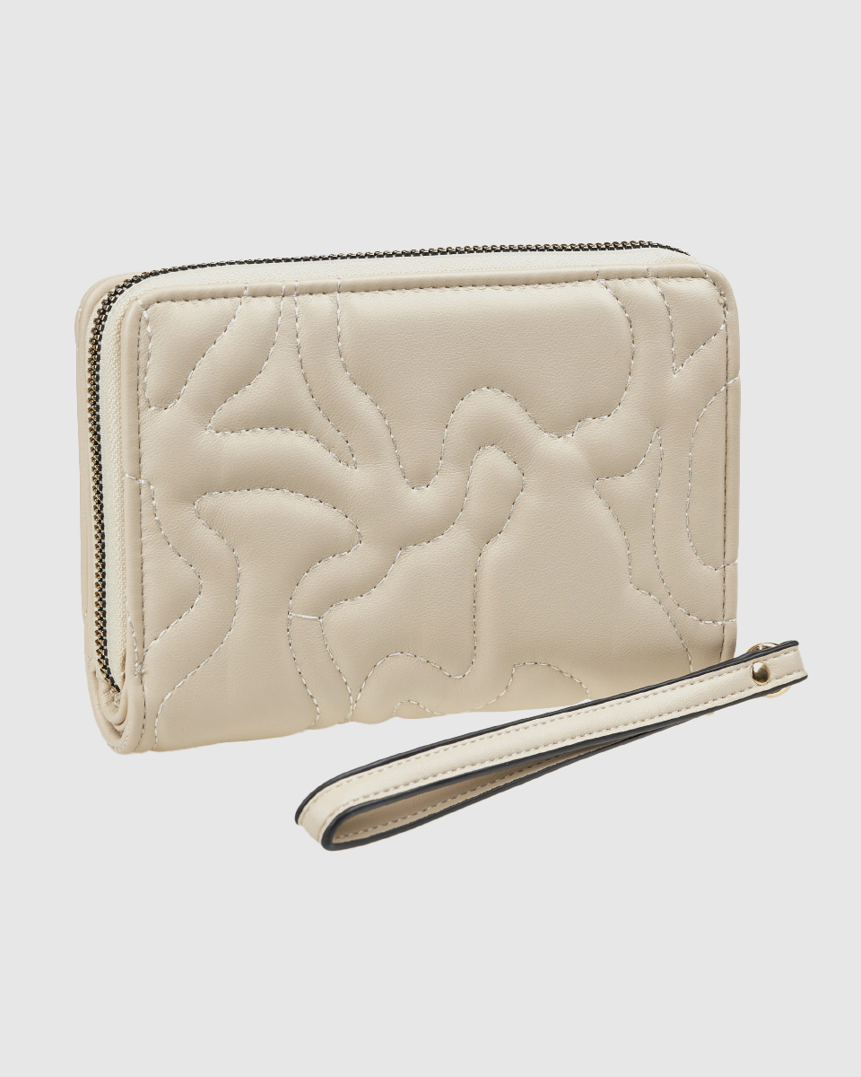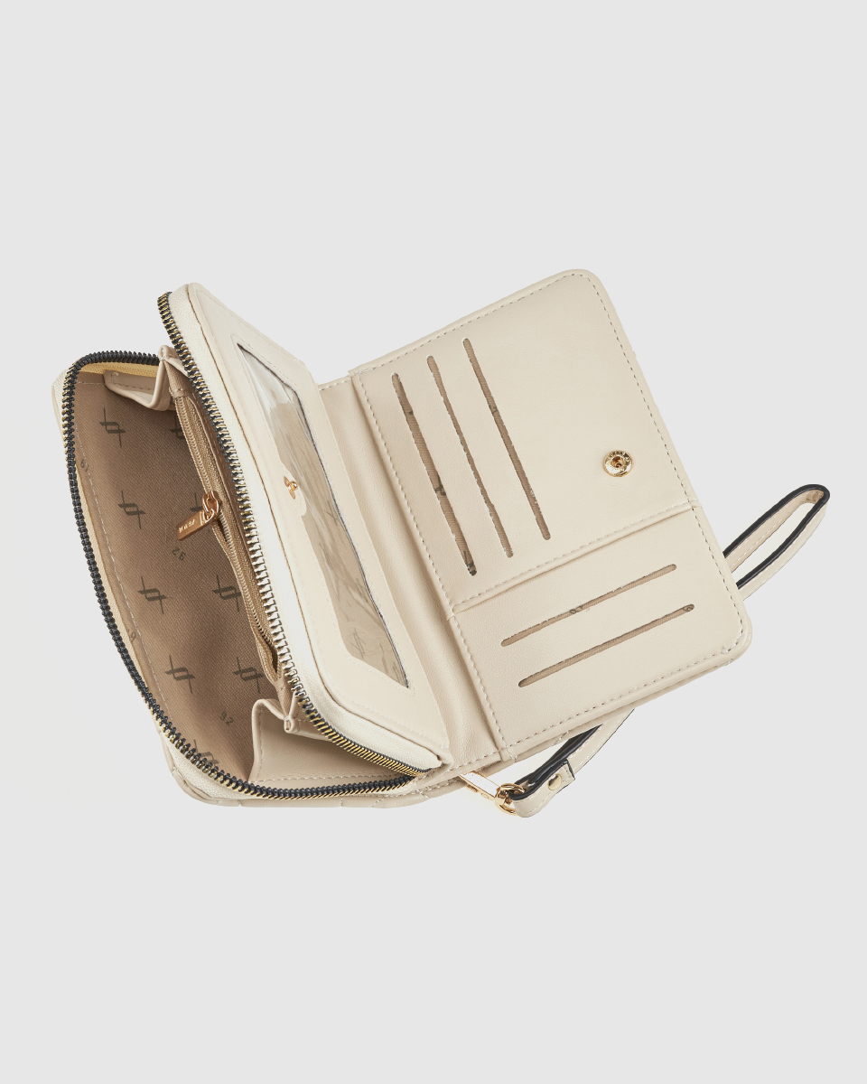 Συνδυάστε το εκρού πορτοφόλι με μπεζ, καφέ ή παστέλ τσάντες για ένα κομψό και ισορροπημένο αποτέλεσμα. Παράλληλα, μπορεί να λειτουργήσει ως φωτεινό στοιχείο σε πιο σκούρα outfits.