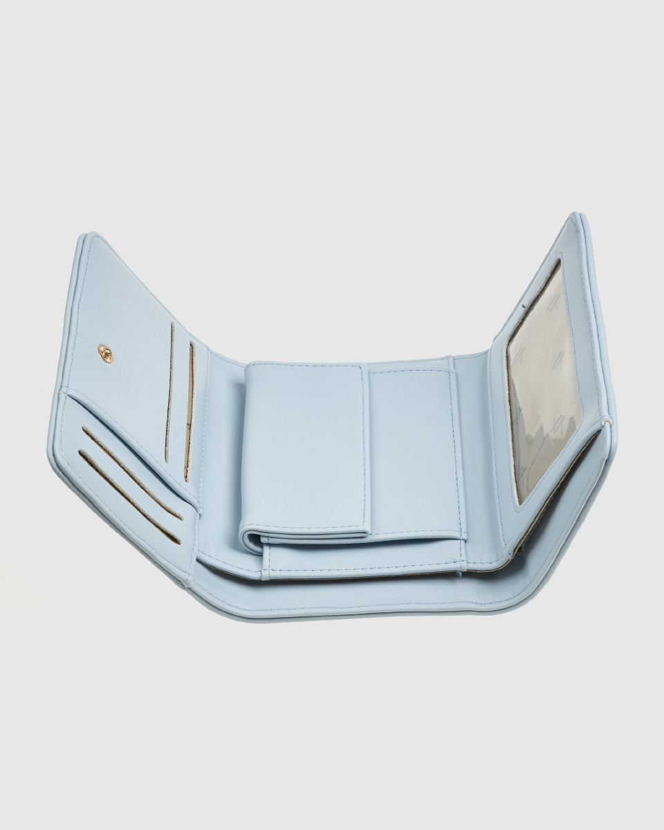 Συνδυάστε το μπλε πορτοφόλι με λευκές, γκρι ή μπεζ τσάντες για ένα κομψό και ισορροπημένο αποτέλεσμα. Παράλληλα, μπορεί να λειτουργήσει ως διακριτικό statement σε minimal outfits.