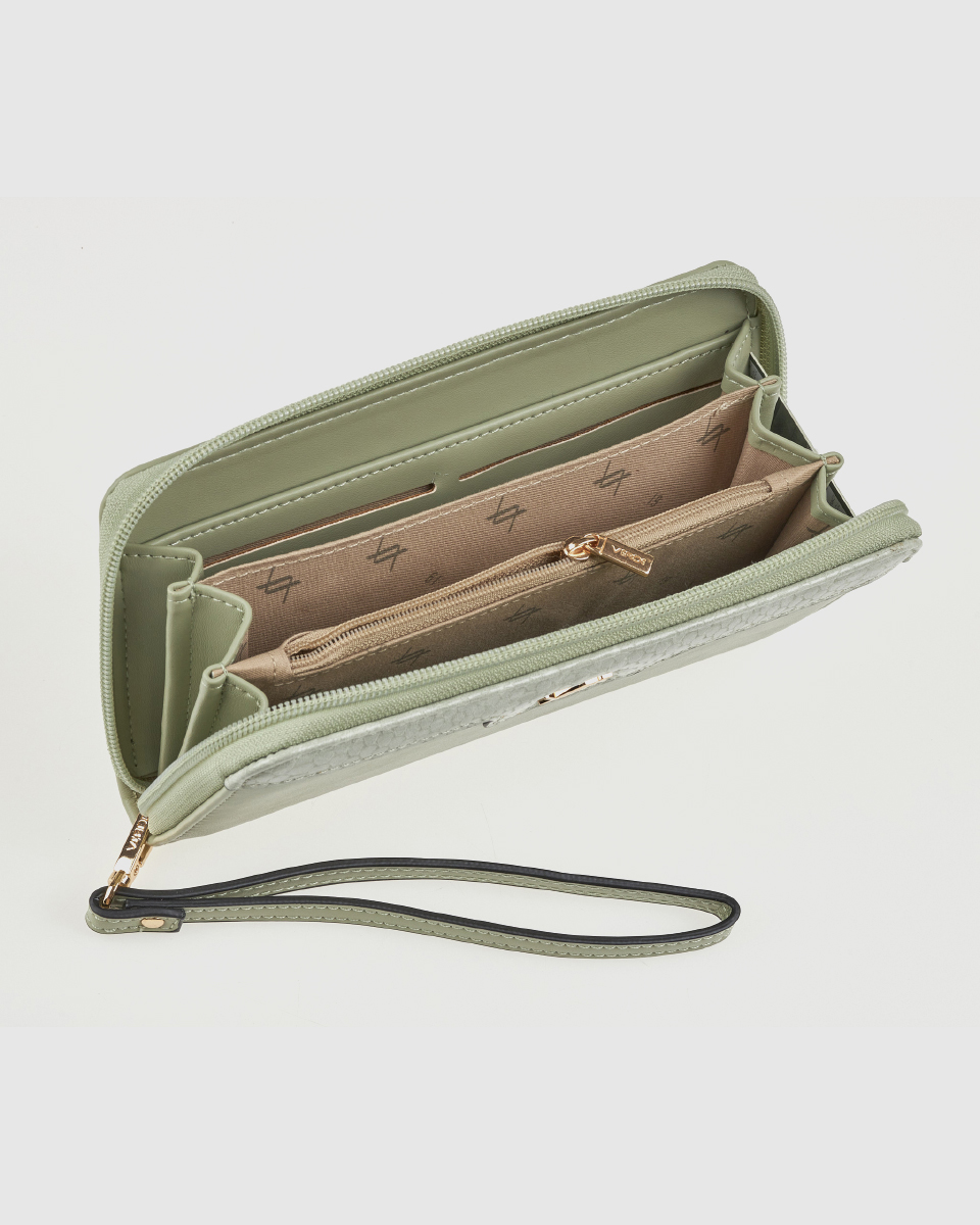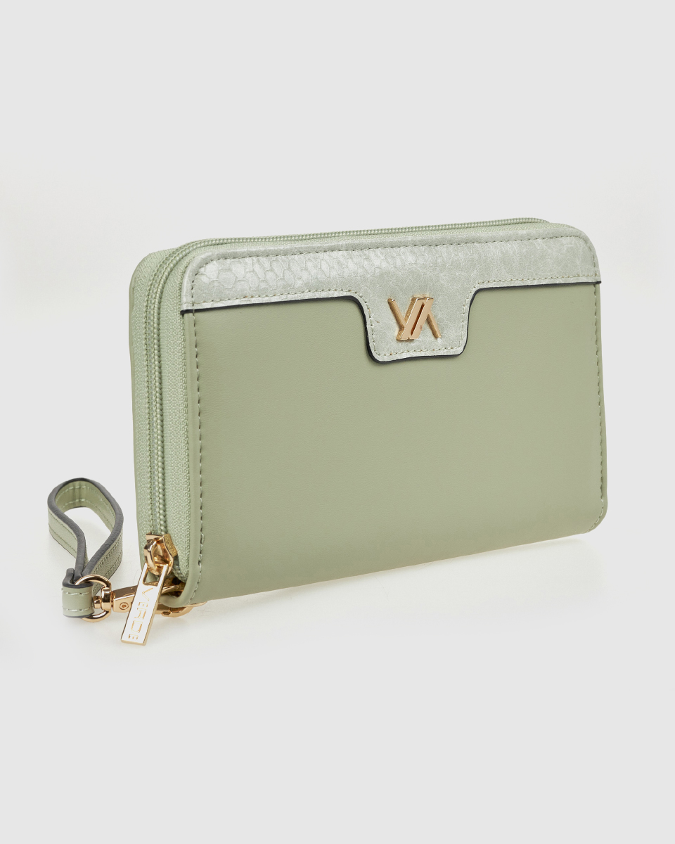 Ανακαλύψτε το γυναικείο πορτοφόλι Verde σε απόχρωση μέντας, ένα κομψό και πρακτικό αξεσουάρ που συνδυάζει μοντέρνα αισθητική και υψηλή λειτουργικότητα. Το απαλό χρώμα του προσφέρει φρεσκάδα και στυλ, ενώ παράλληλα αναβαθμίζει κάθε καθημερινό look.
