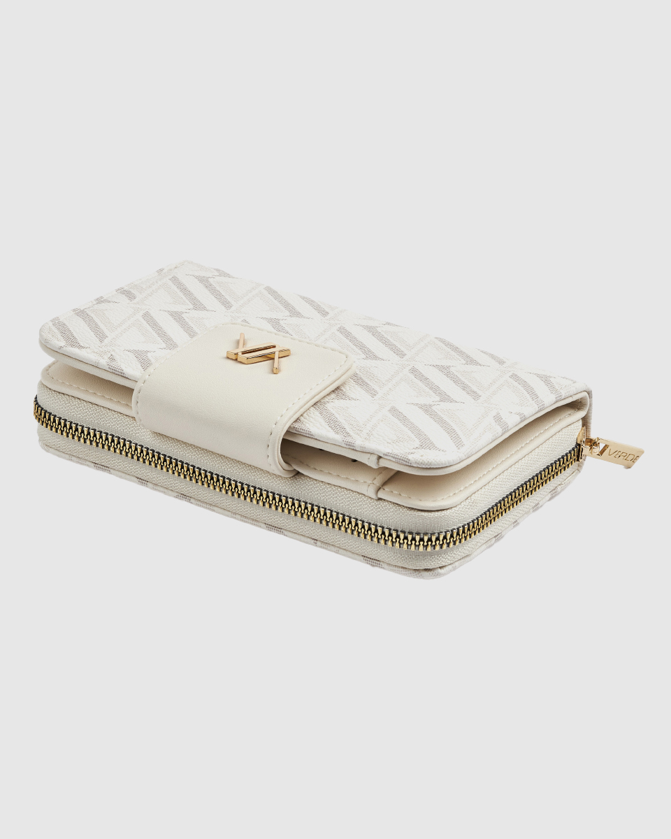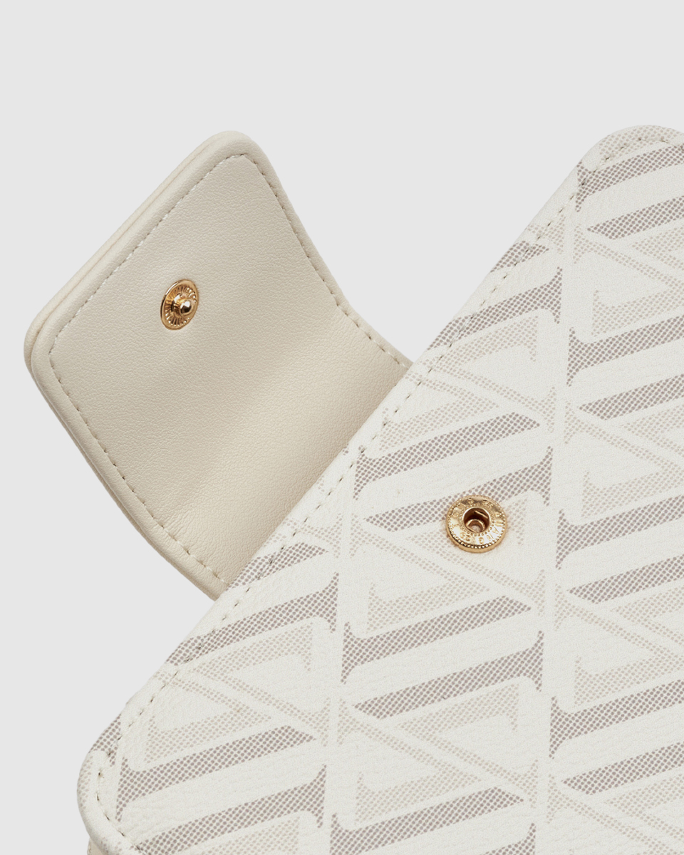 Συνδυάστε το εκρού πορτοφόλι με τσάντες σε ουδέτερους τόνους για ένα κομψό και αρμονικό αποτέλεσμα. Το ανάγλυφο μοτίβο προσθέτει ενδιαφέρον ακόμη και στα πιο minimal looks, δημιουργώντας ένα ολοκληρωμένο σύνολο.