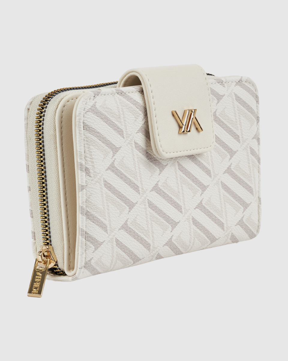 Ανακαλύψτε το γυναικείο πορτοφόλι Verde σε εκρού με ανάγλυφο μοτίβο και πρακτική διάταξη. Διαστάσεις: 16 εκ. x 11 εκ. x 4 εκ.